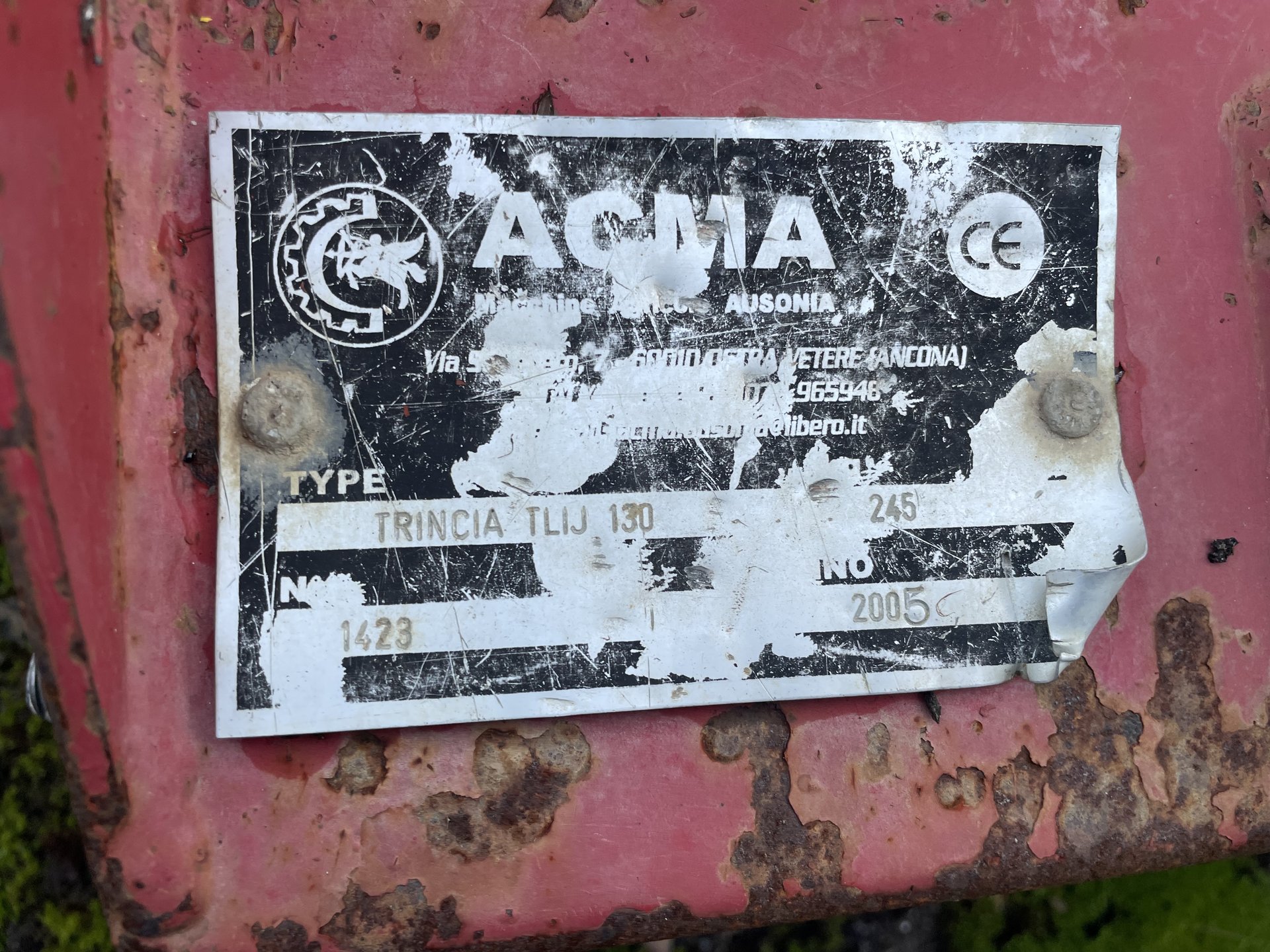 Trincia Acma TLI Junior 135, anno 2005. Macchina a z, completa di rotore a mazze, tubi e innesti.