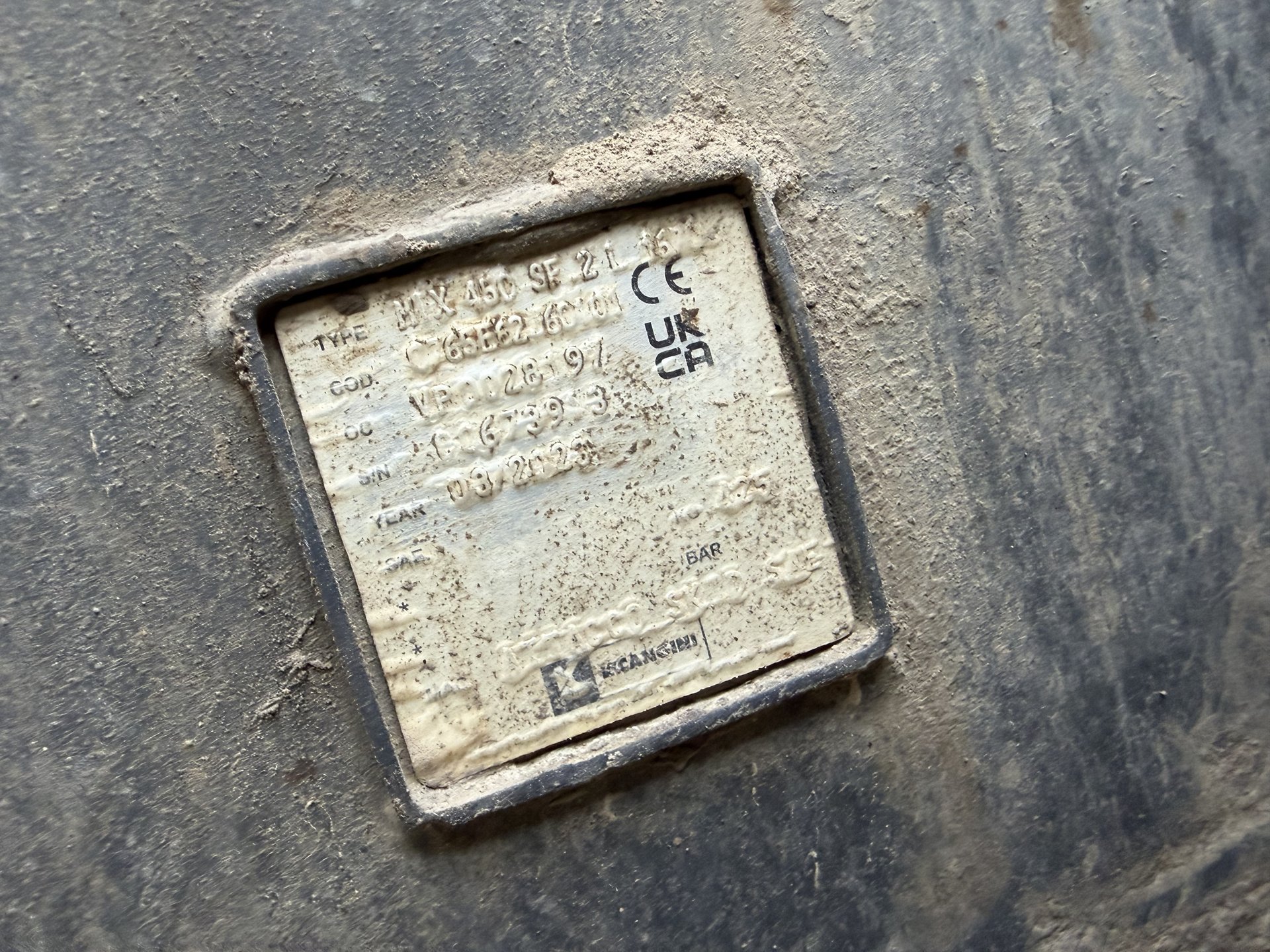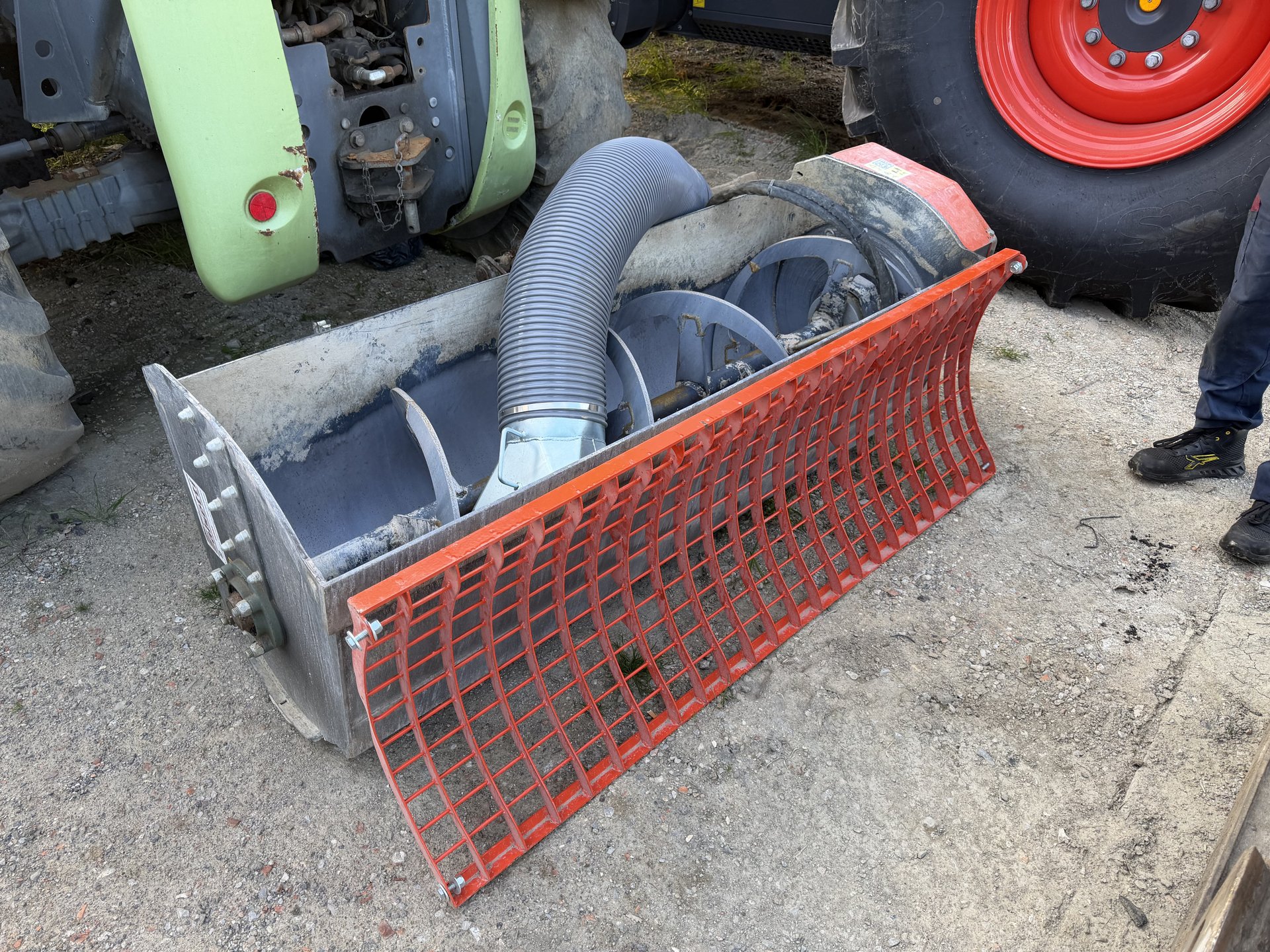 Benna miscelatrice Cangini MIX 450, per minipala. Completa di attacco skid, tubi, innesti, connettore per macchina Caterpillar. Macchina usata pochissimo, griglia di sicurezza e tubo di scarico nuovi.