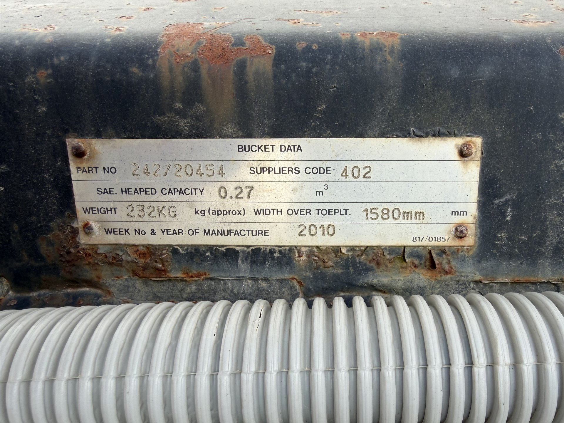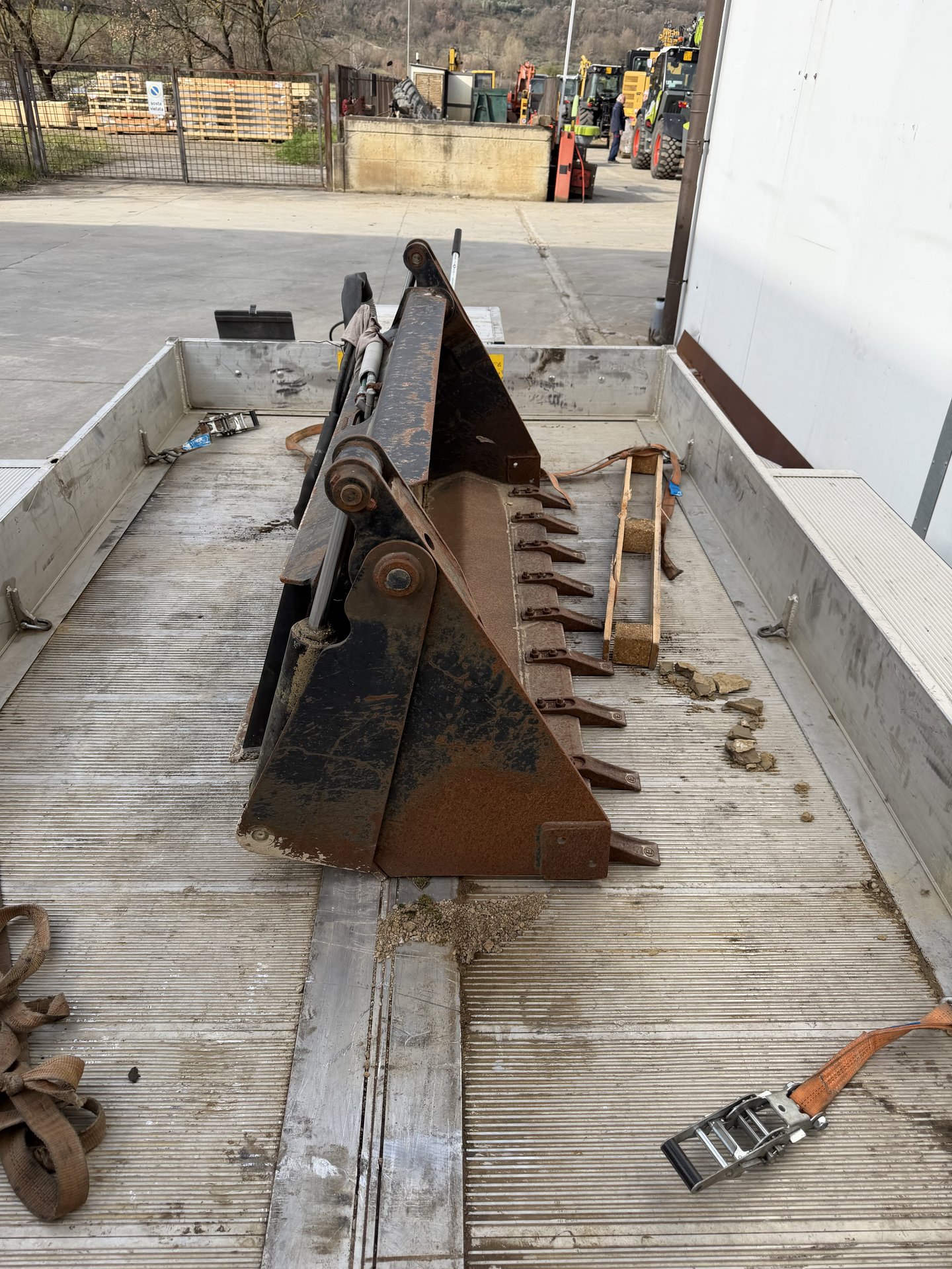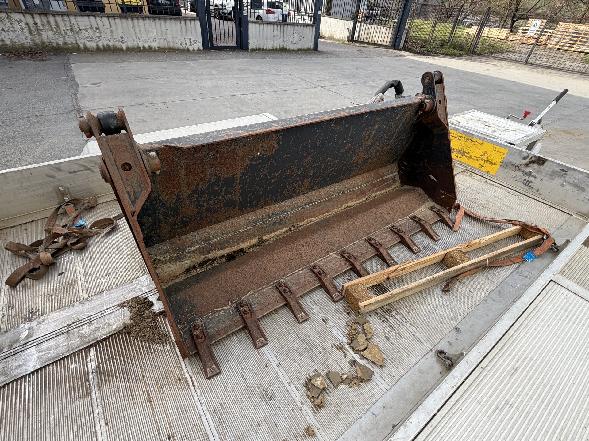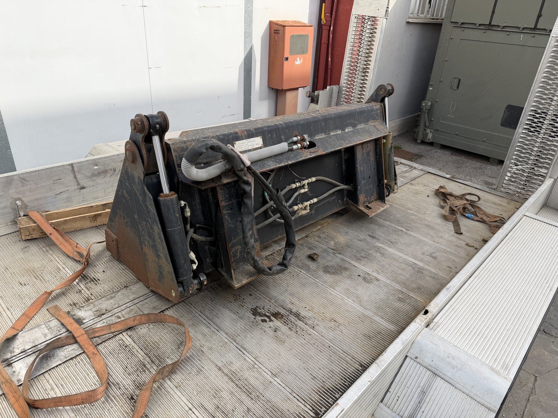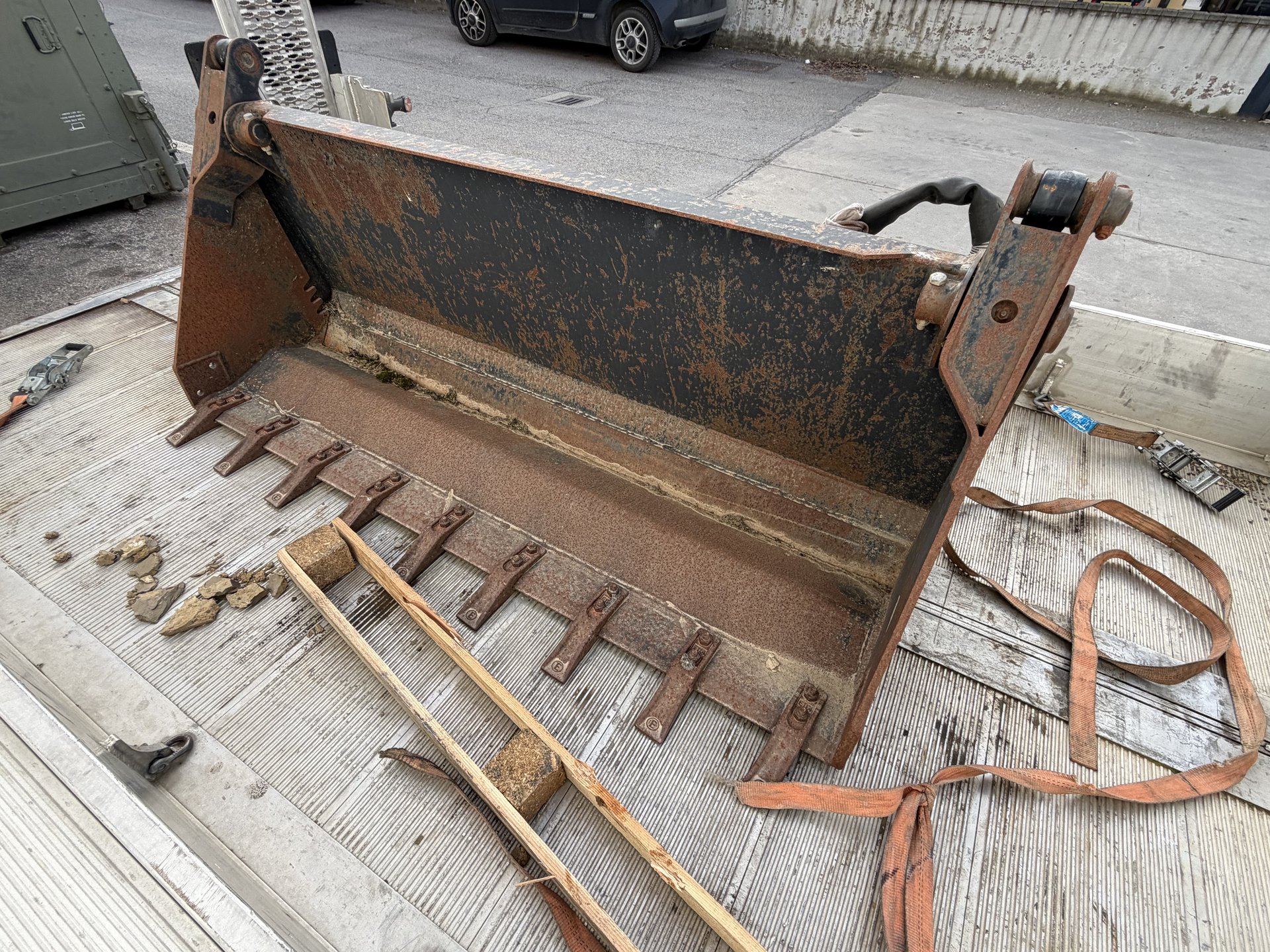 Benna mordente per minipala, attacco skid, completa di tubi e innesti. Misura 1.55m.
