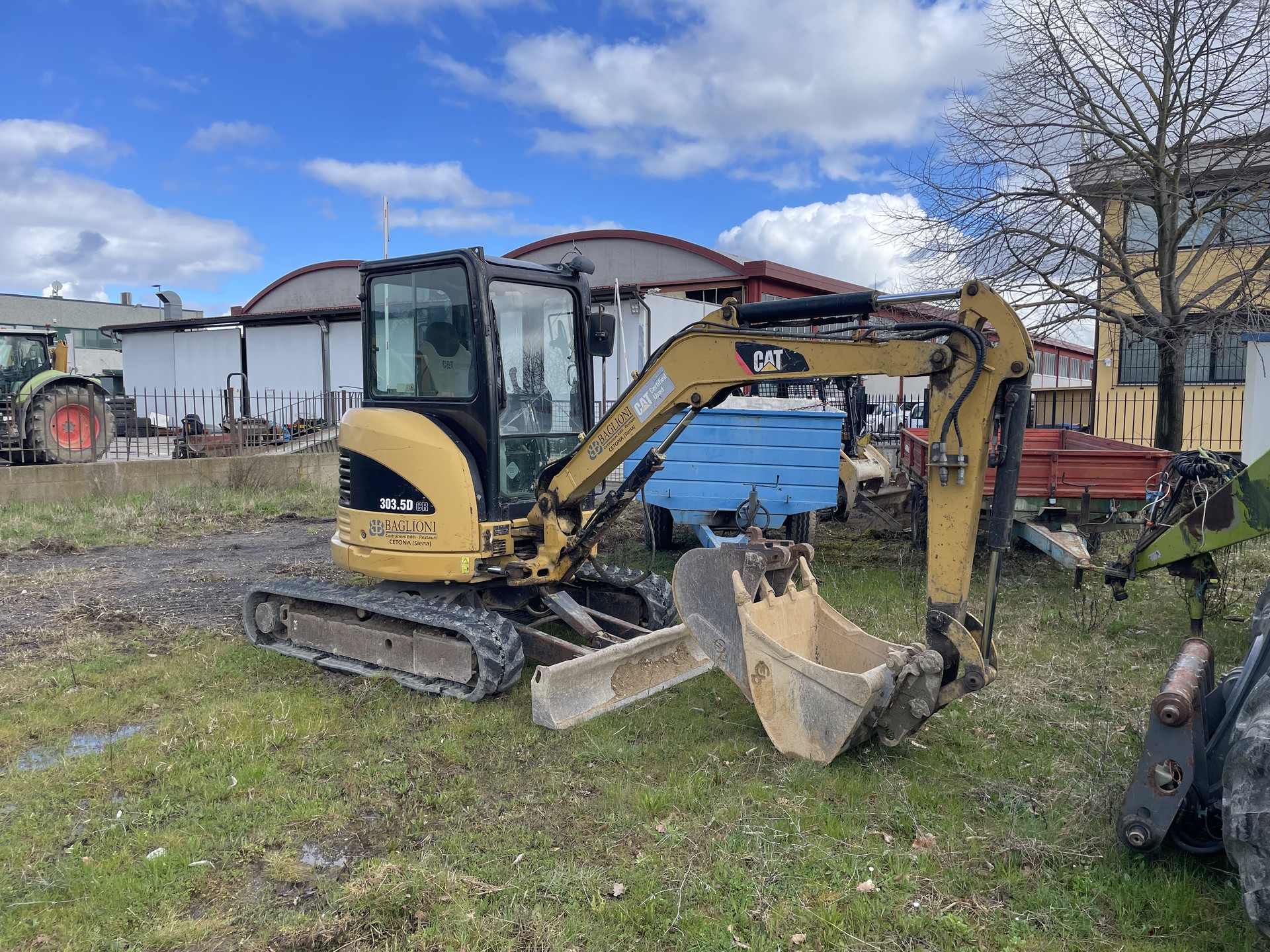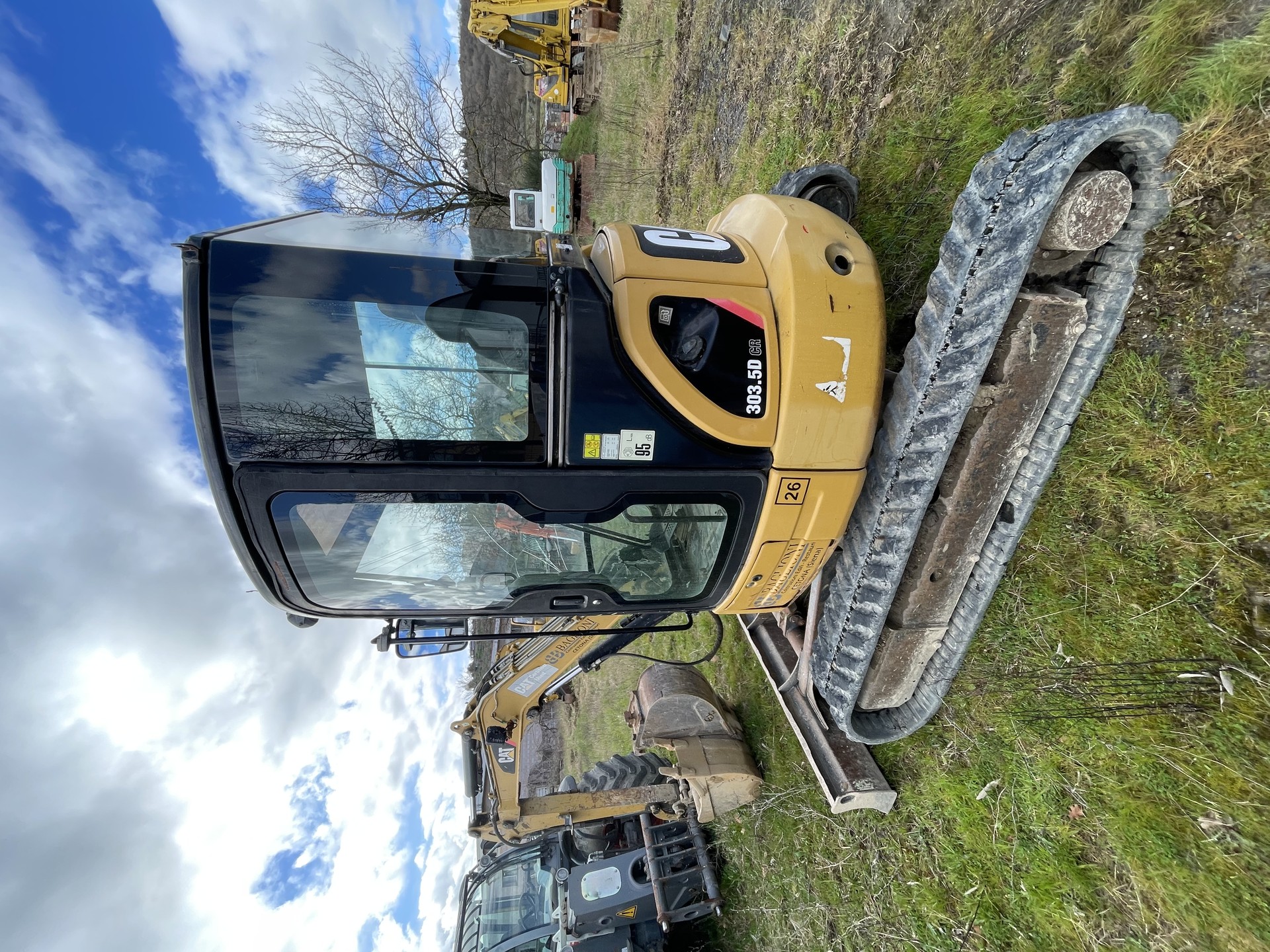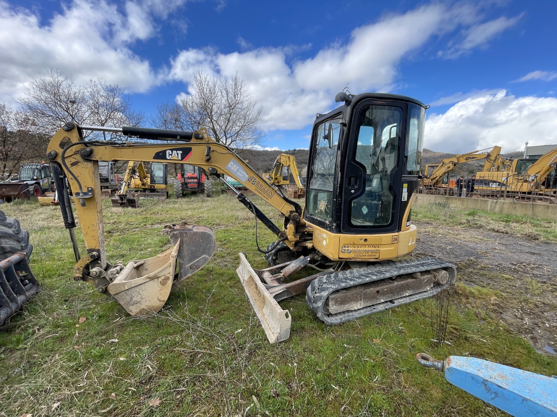 Escavatore Caterpillar 303.5 D CR, anno 2009, 7600 ore di lavoro. Macchina completa di cabina con A/C, cingoli in gomma, attacco rapido e tre benne, impianto trincia martello.