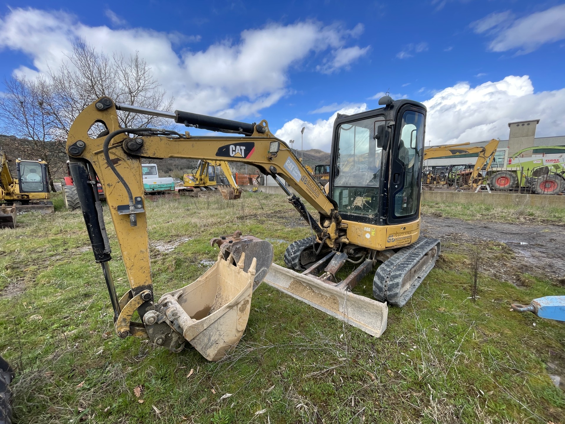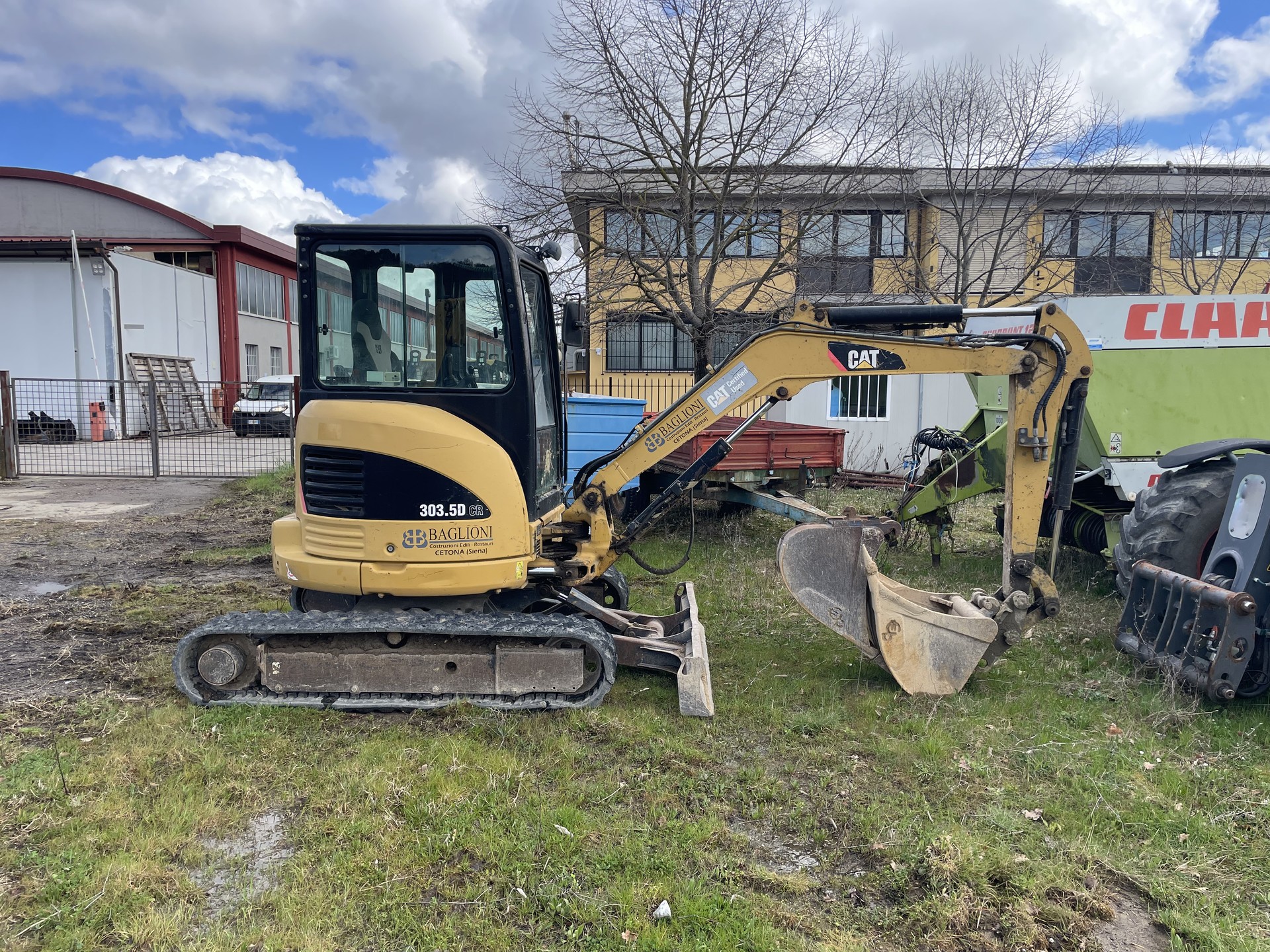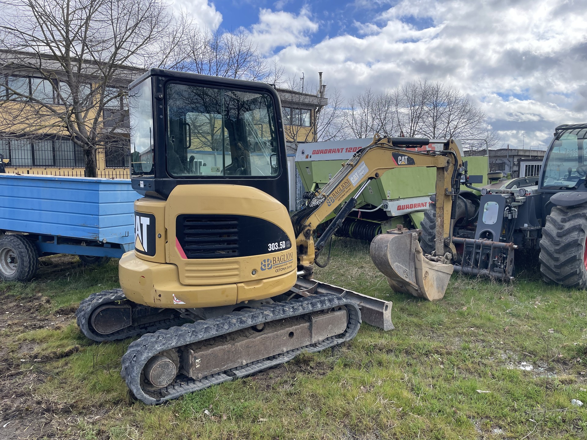 Escavatore Caterpillar 303.5 D CR, anno 2009, 7600 ore di lavoro. Macchina completa di cabina con A/C, cingoli in gomma, attacco rapido e tre benne, impianto trincia martello.