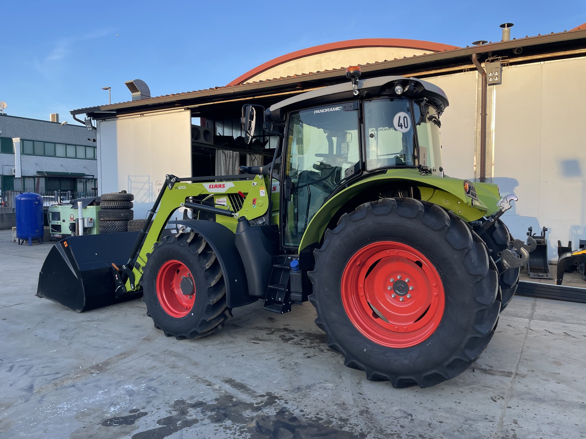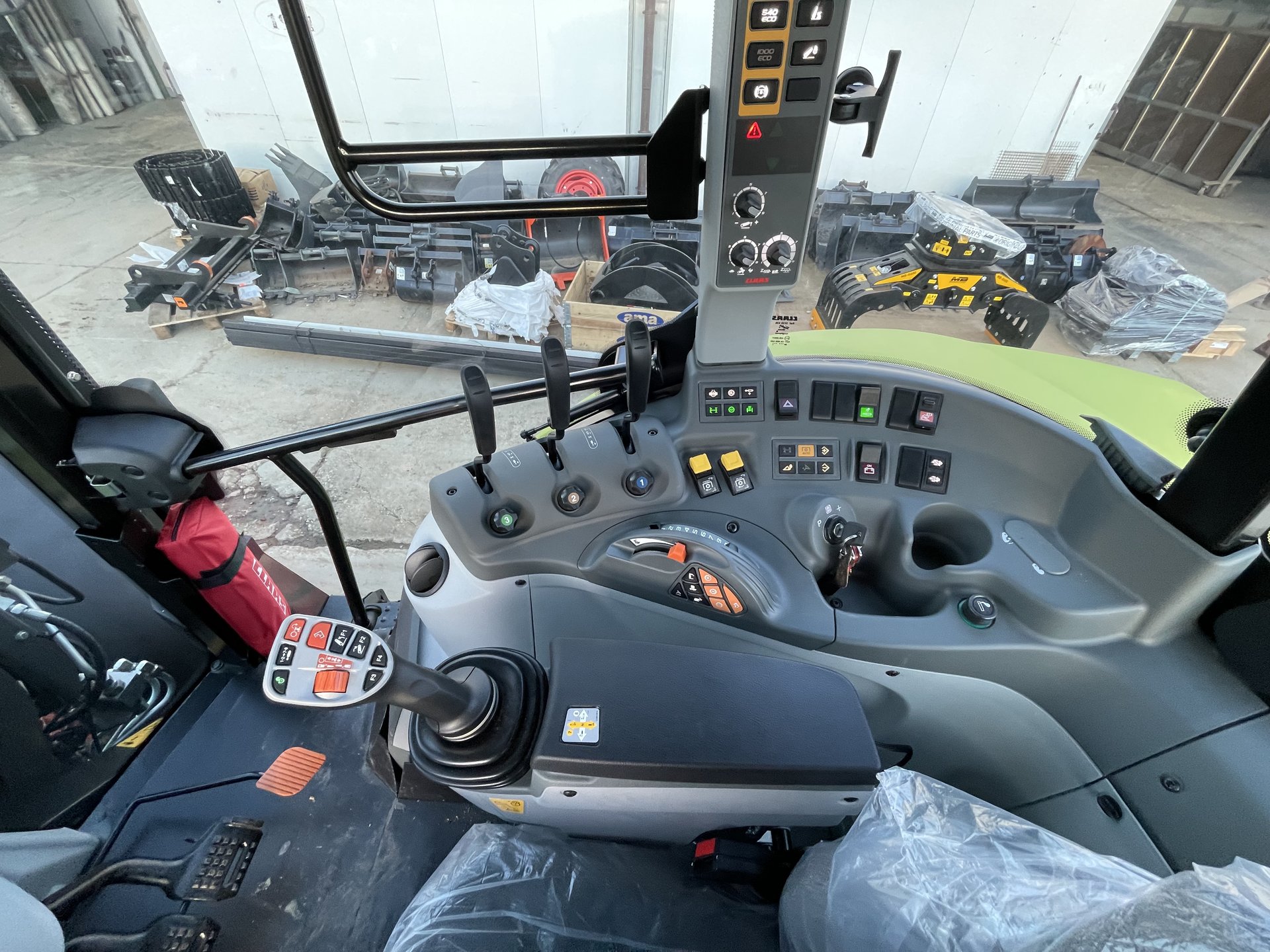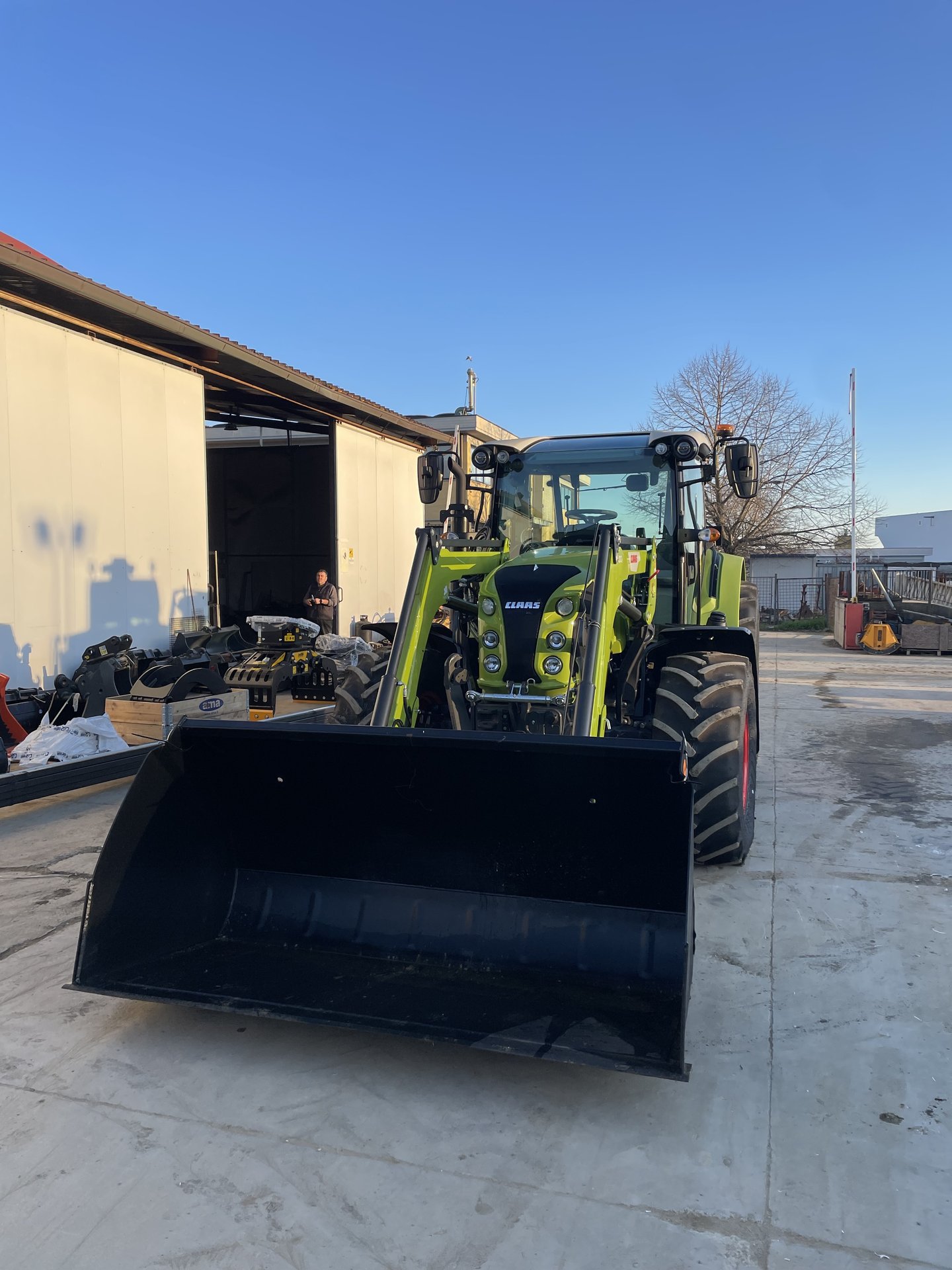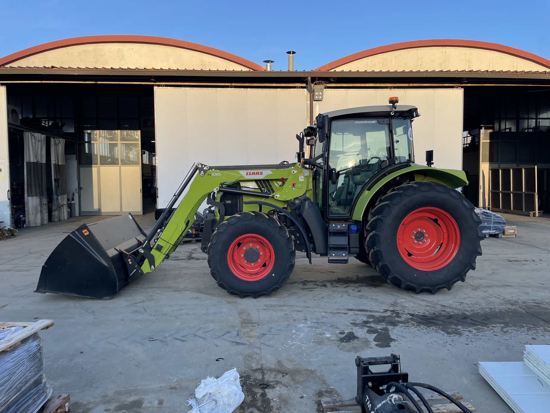 Trattore Claas Arion 470, anno 2024, macchina immatricolata, zero ore di lavoro. Macchina completa di cambio quadrishift, 4 marce sotto carico per 4 gamme, assale sospeso, memoria regime motore con manovra di fine campo, inversore idraulico con comando anche su leva multifunzione, 3 distributori, sollevatore anteriore, PTO anteriore, frenatura pneumatica, attacco supplementare per aria compressa in cabina, cabina sospesa a 6 montanti, tetto panoramic, leva electropilot, CIS con terminale a colori, caricatore frontale FL100E con forca balloni, gommato 600/65 R34 , 480/65 R24.
