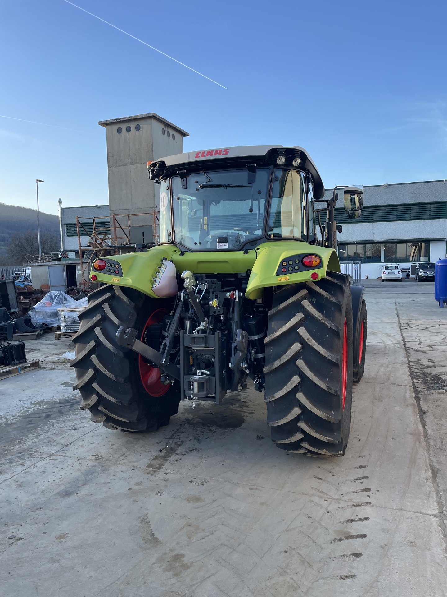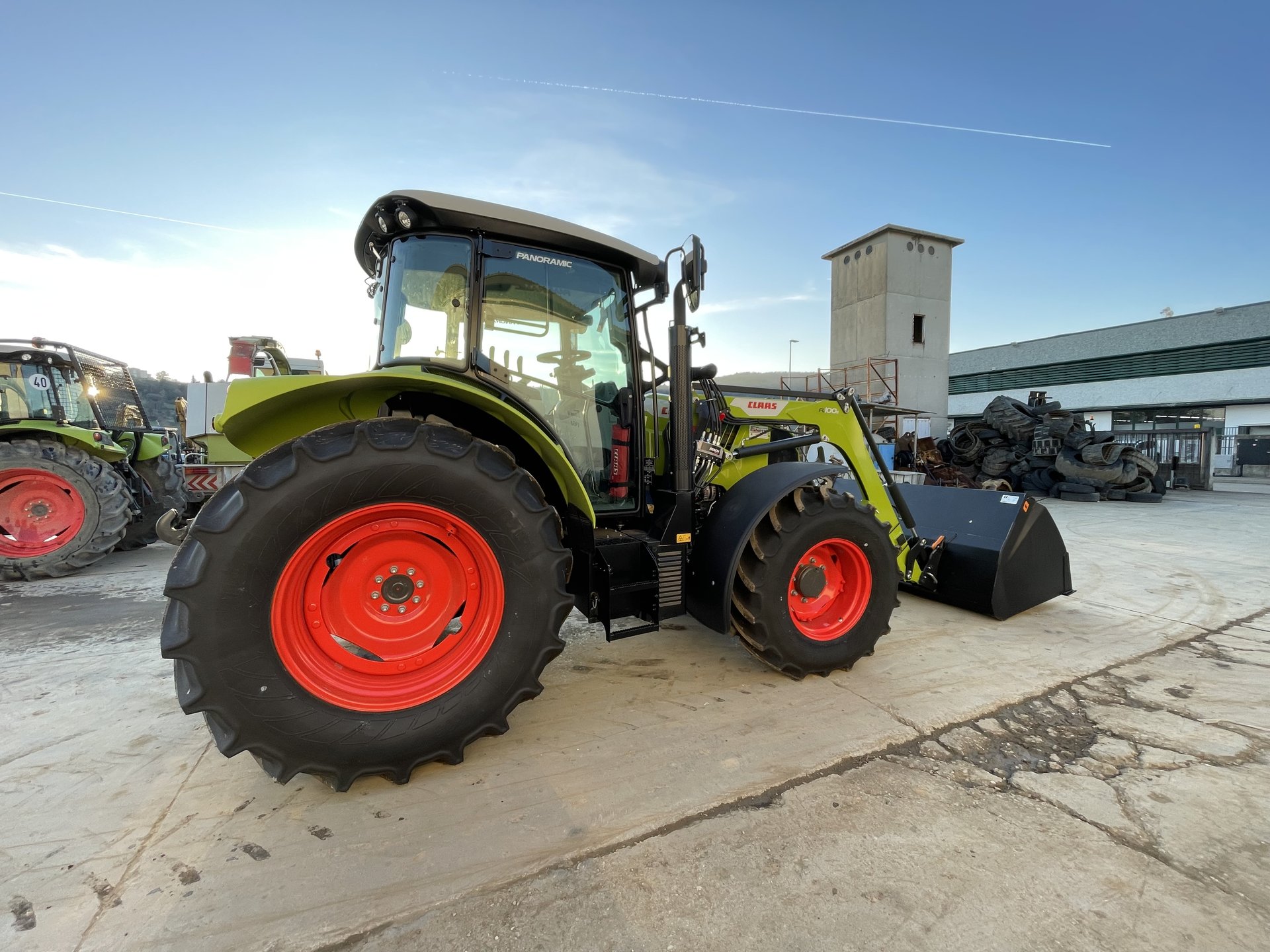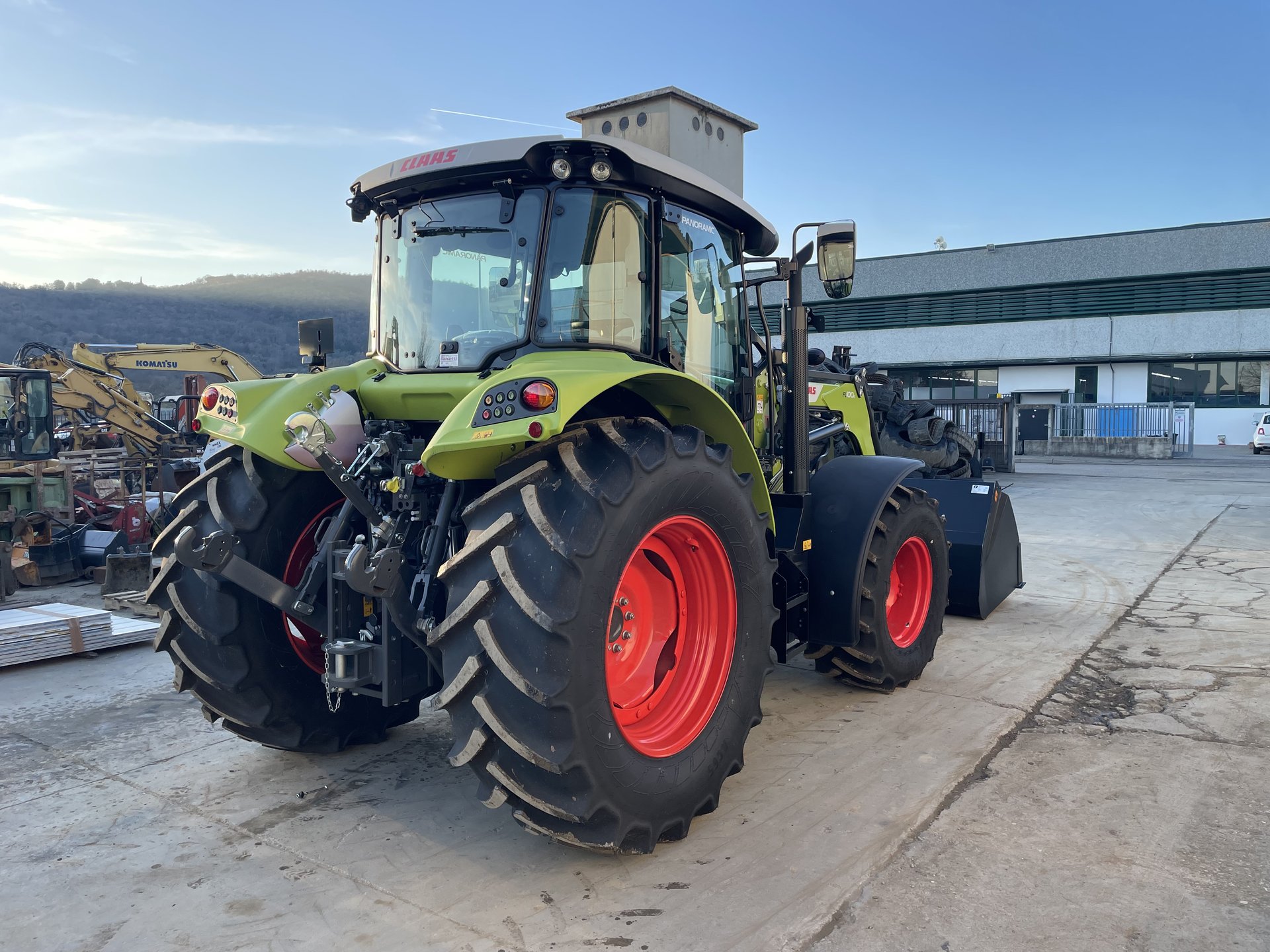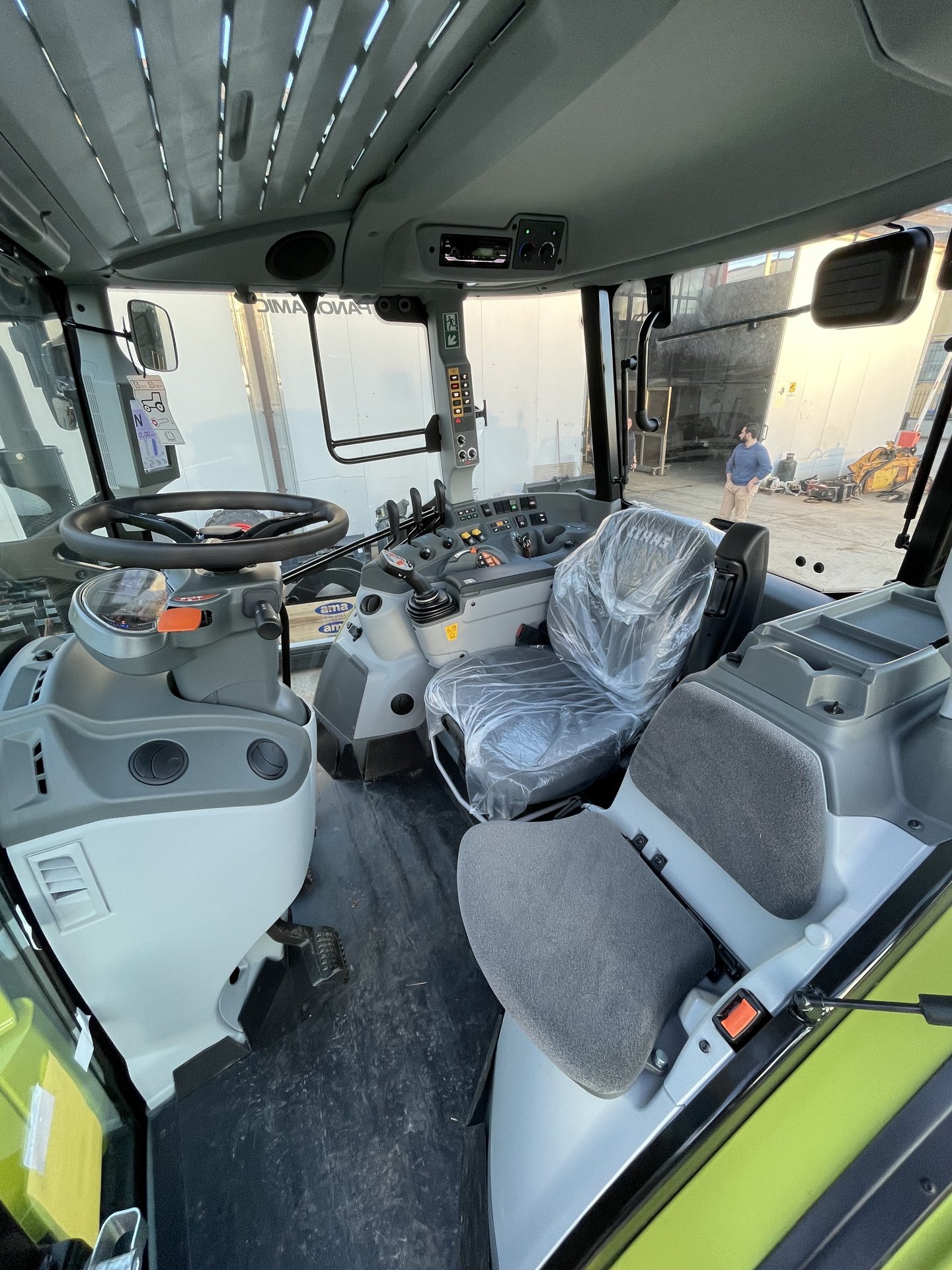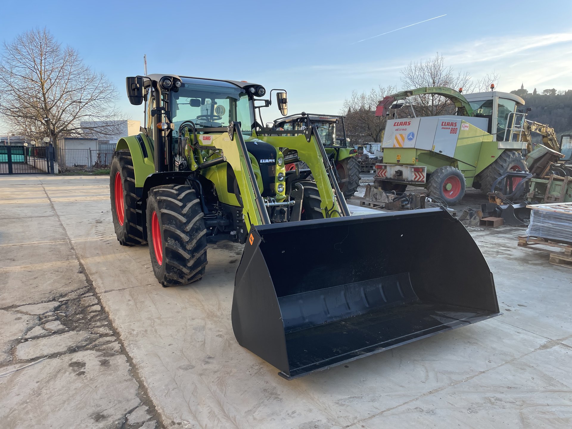 Trattore Claas Arion 470, anno 2024, macchina immatricolata, zero ore di lavoro. Macchina completa di cambio quadrishift, 4 marce sotto carico per 4 gamme, assale sospeso, memoria regime motore con manovra di fine campo, inversore idraulico con comando anche su leva multifunzione, 3 distributori, sollevatore anteriore, PTO anteriore, frenatura pneumatica, attacco supplementare per aria compressa in cabina, cabina sospesa a 6 montanti, tetto panoramic, leva electropilot, CIS con terminale a colori, caricatore frontale FL100E con forca balloni, gommato 600/65 R34 , 480/65 R24.