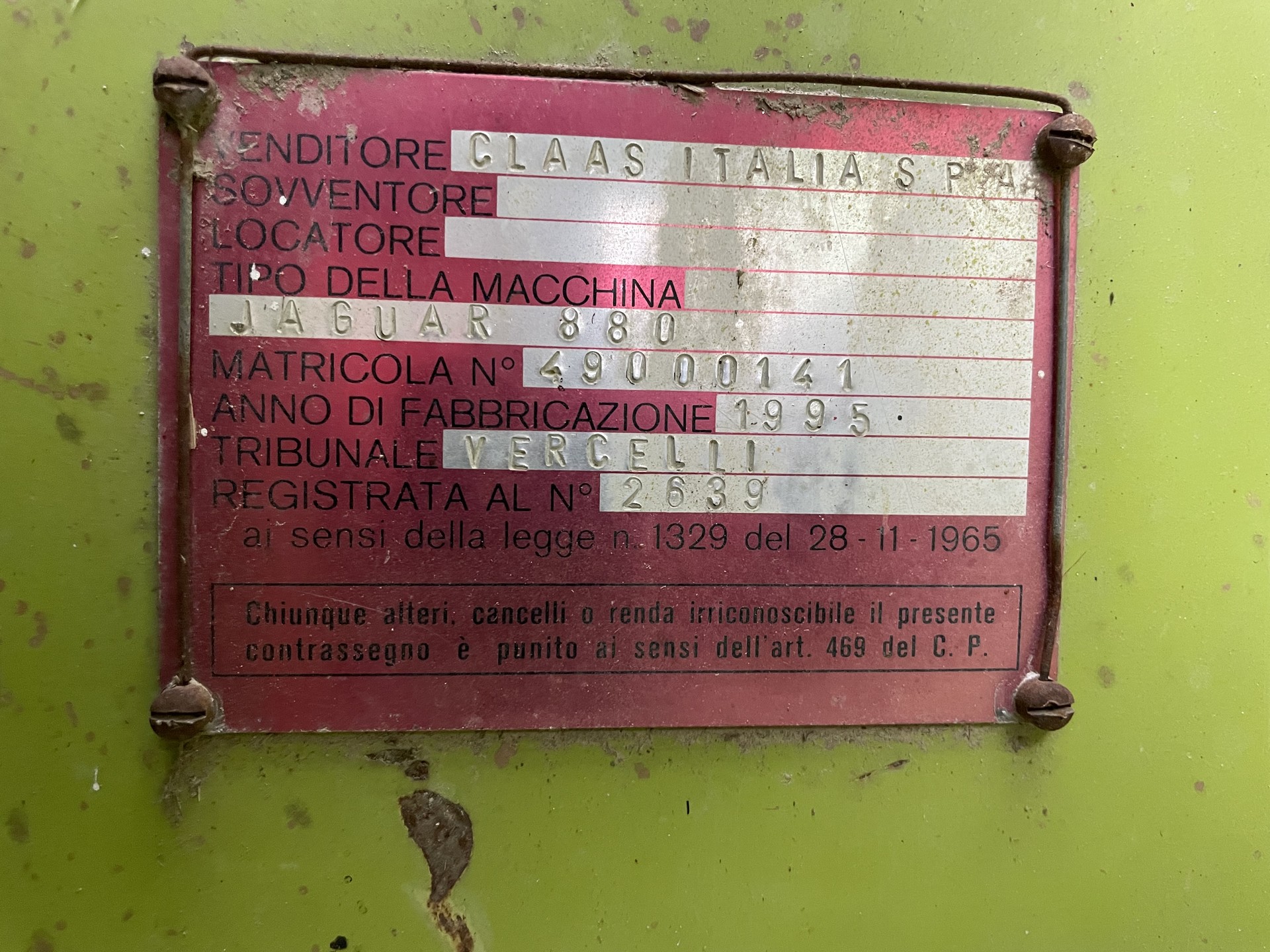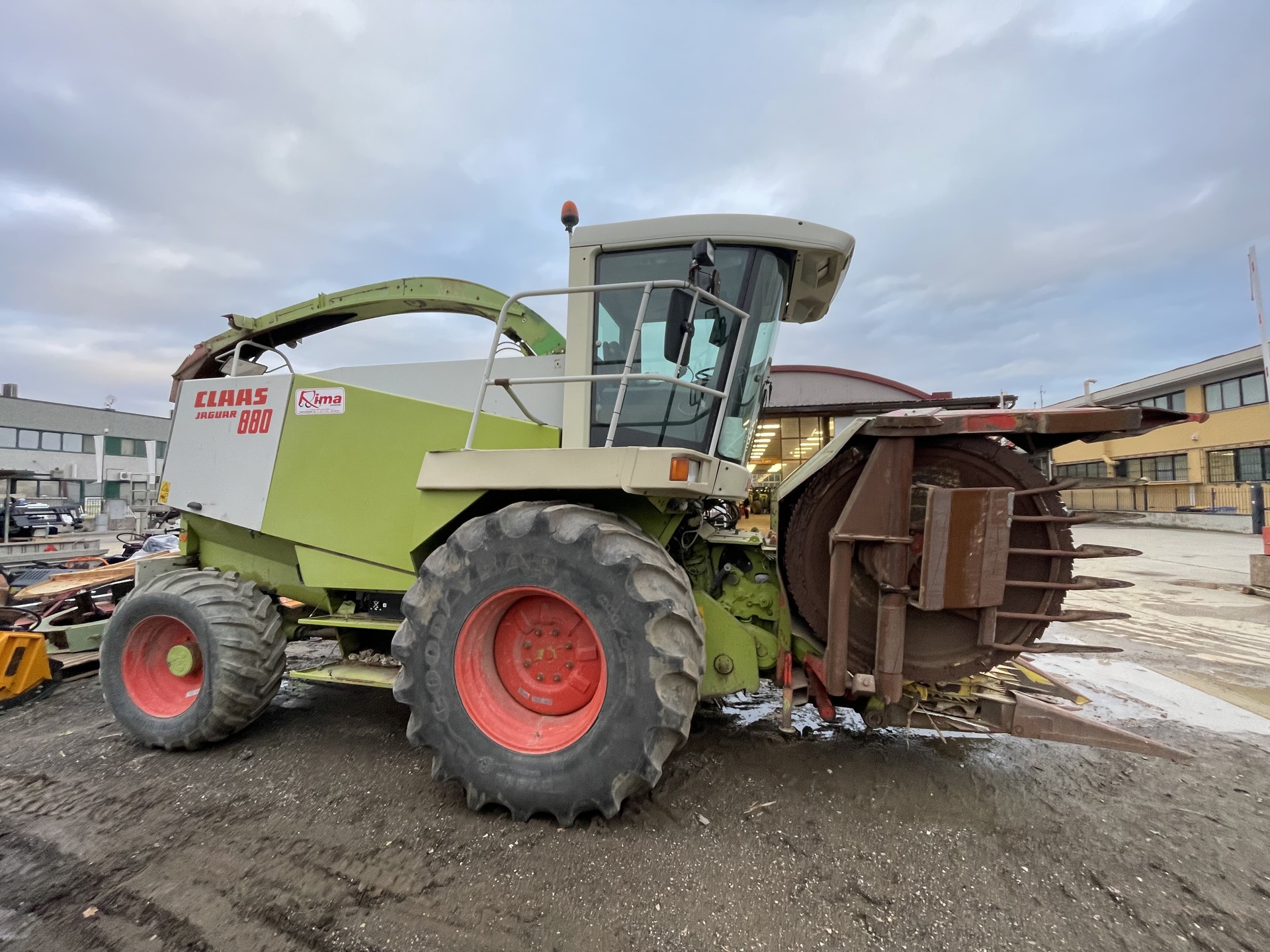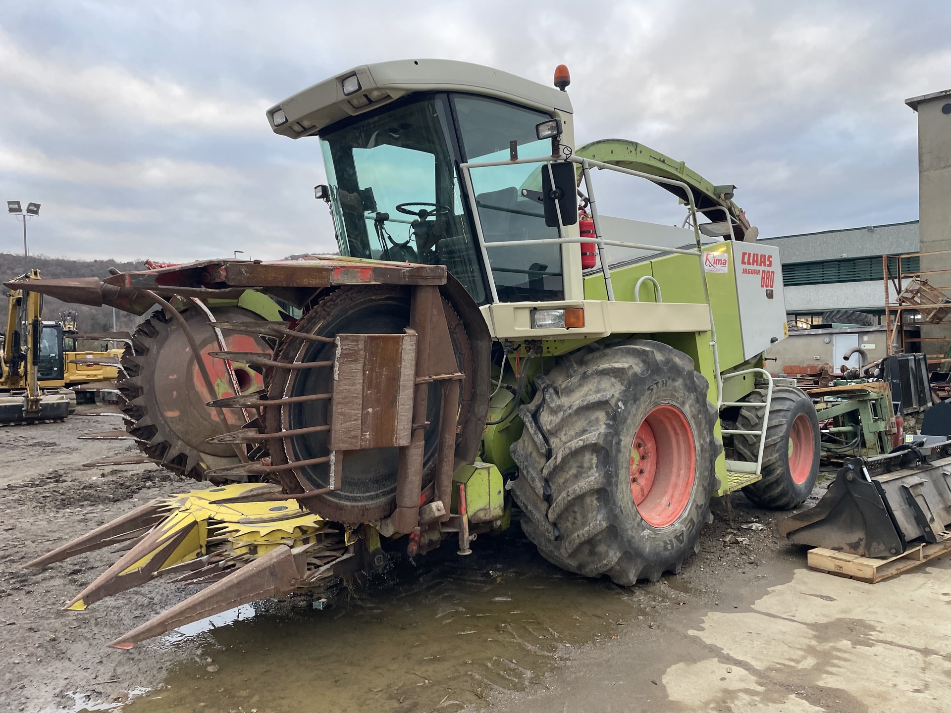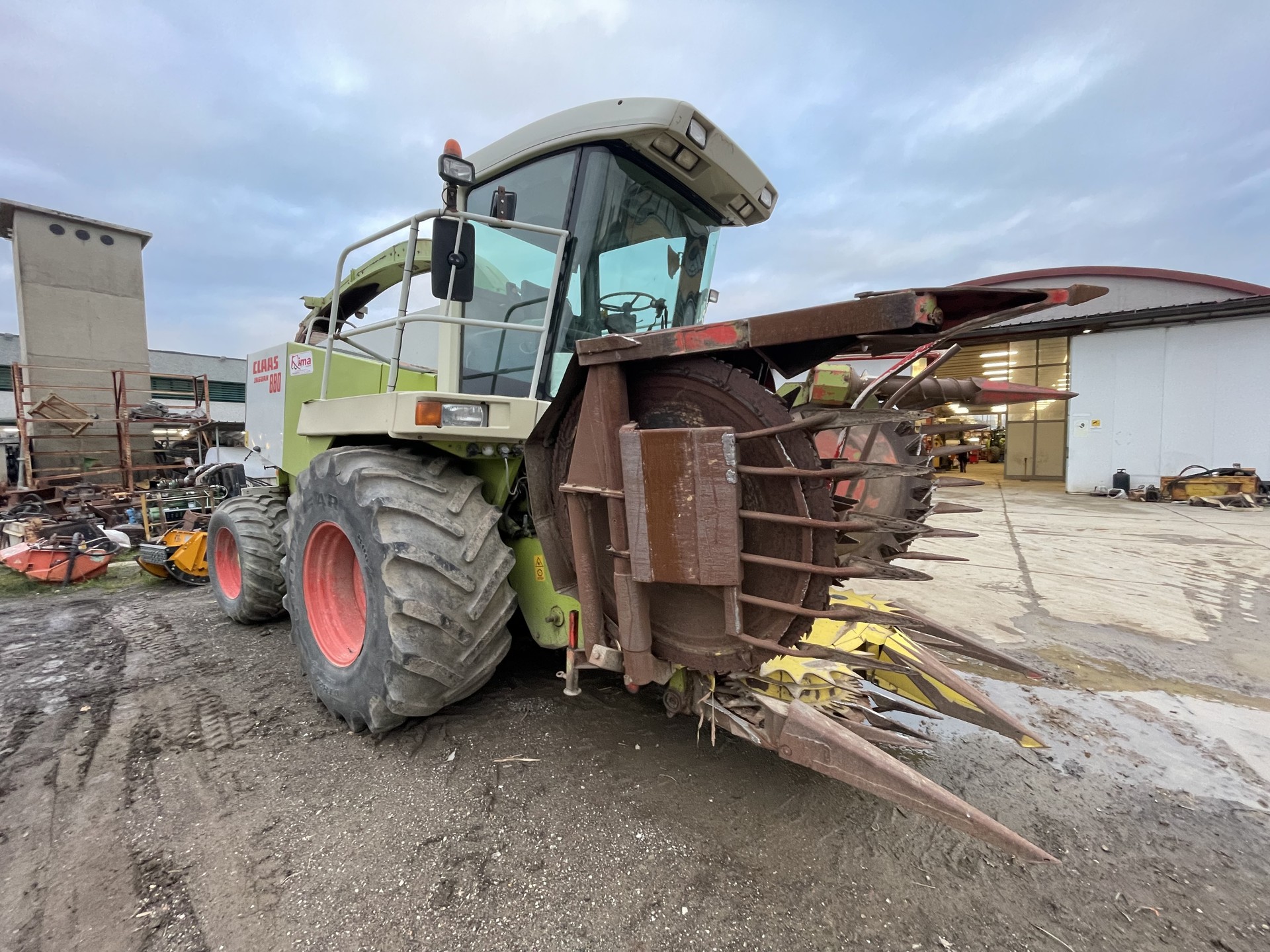 Trincia Claas Jaguar 880, anno 1995. Macchina completa di rompigranella, ruote da 800, doppia trazione, testata Kemper 6 file e pick up, motore mercedes.