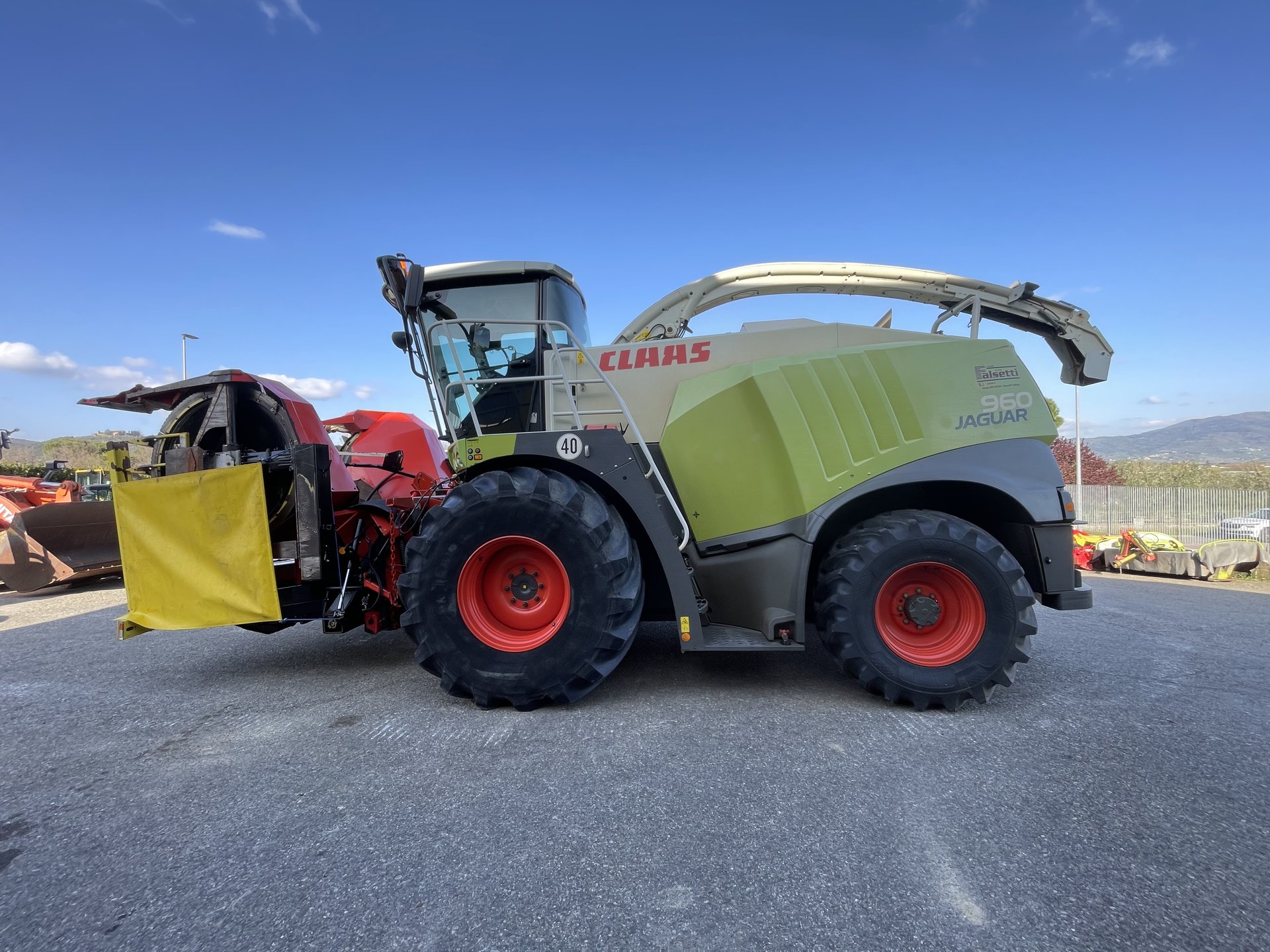 Trincia semovente Claas Jaguar 960 497, anno 2017, 2800 ore di tamburo, 3900 ore totali macchina. Macchina completa di: sedile pneumatico bassa frequenza raffrescato e riscaldato, tamburo di taglio V max 36 coltelli, rinforzi rulli di introduzione, telo copricanale, tubo di scarico prolunga “M”, metal detector e stop rock, trombe ad aria compressa, radio mp3 bluetooth, doppia trazione, pneumatici 800/70 R32, corn cracker, dynamic power e dynamic cooling. Barra Kemper 8 file.