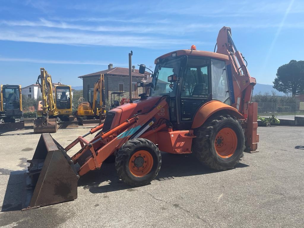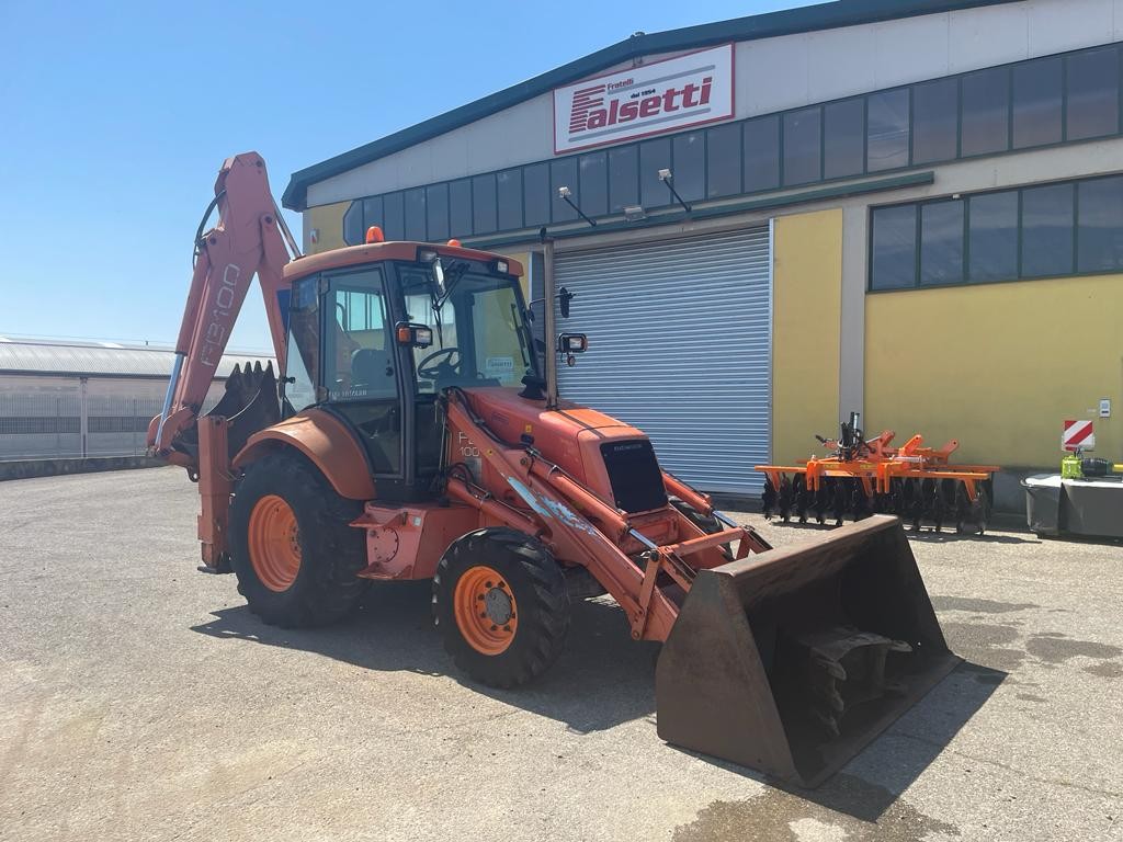 Terna Fiat Hitachi FB 100, anno 1997, circa 9000 ore. Macchina con 4 ruote motrici, completa di 3 benne.