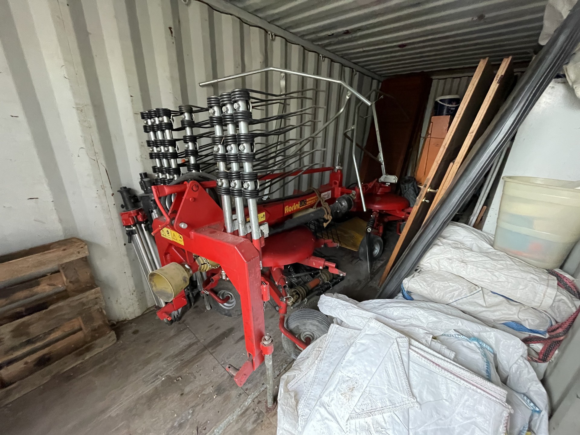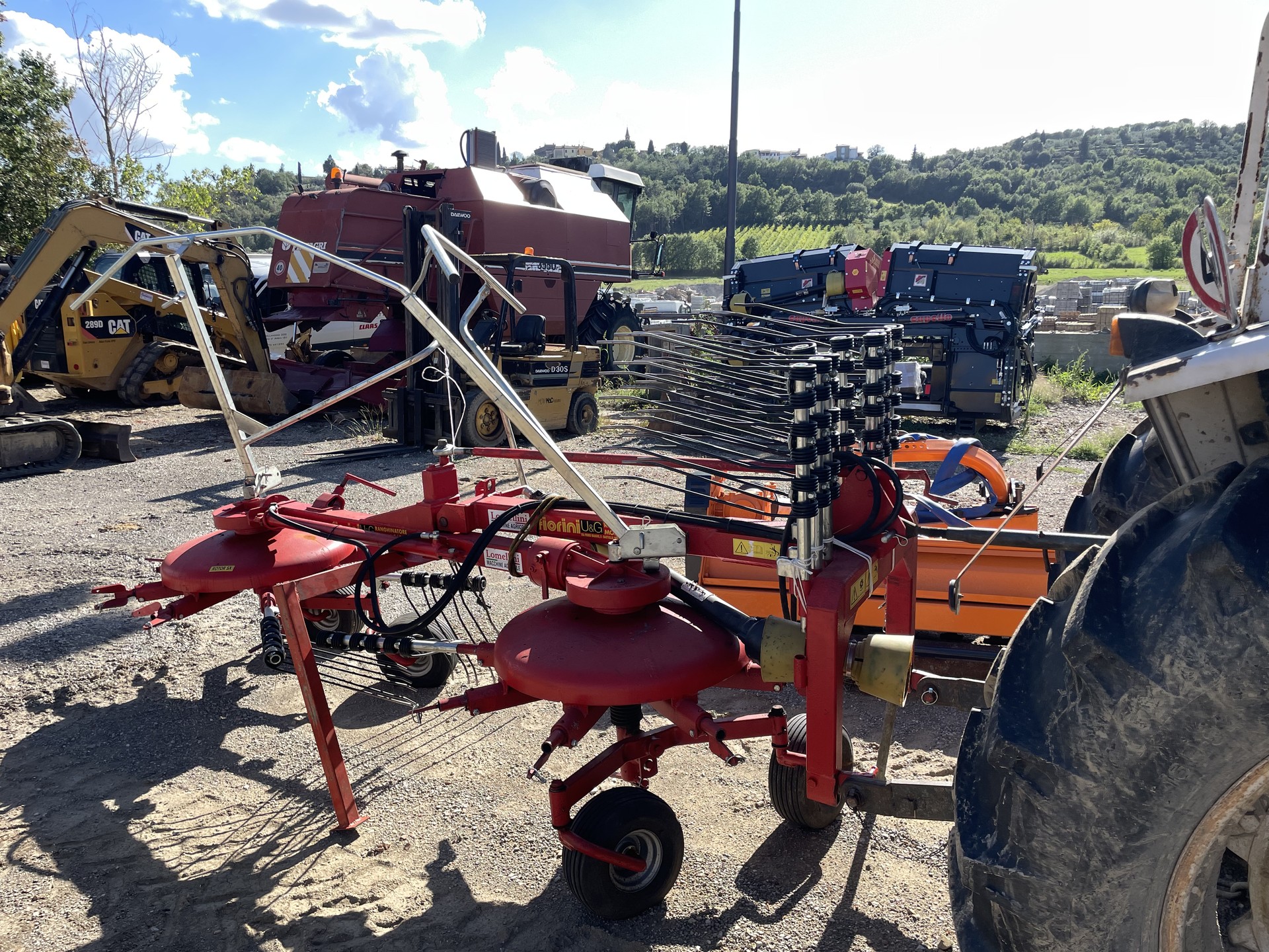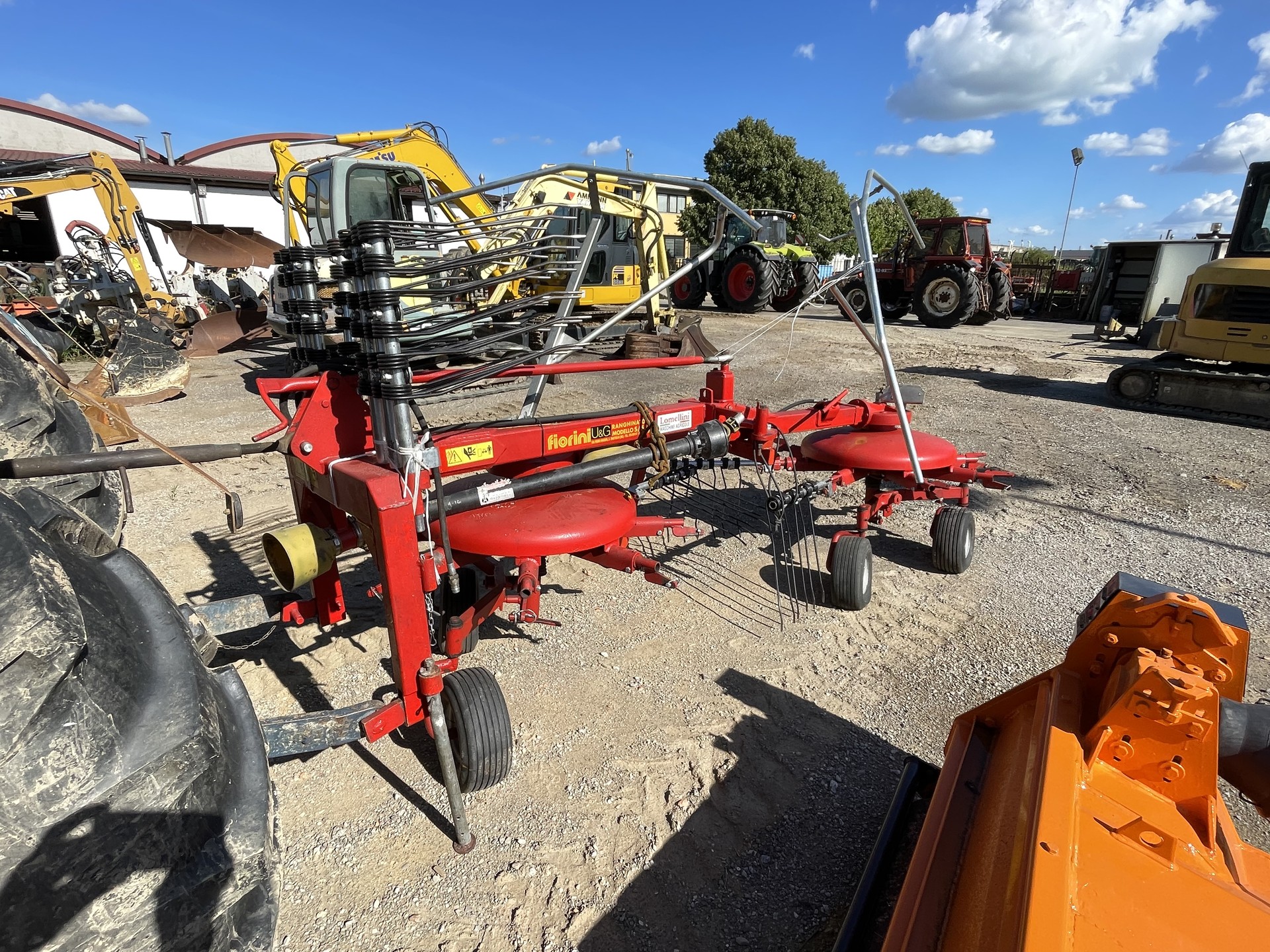 Ranghinatore Fiorini doppia girante. Larghezza di lavoro 5,50 metri, macchina seminuova, completo di cardano e bracci di scorta.