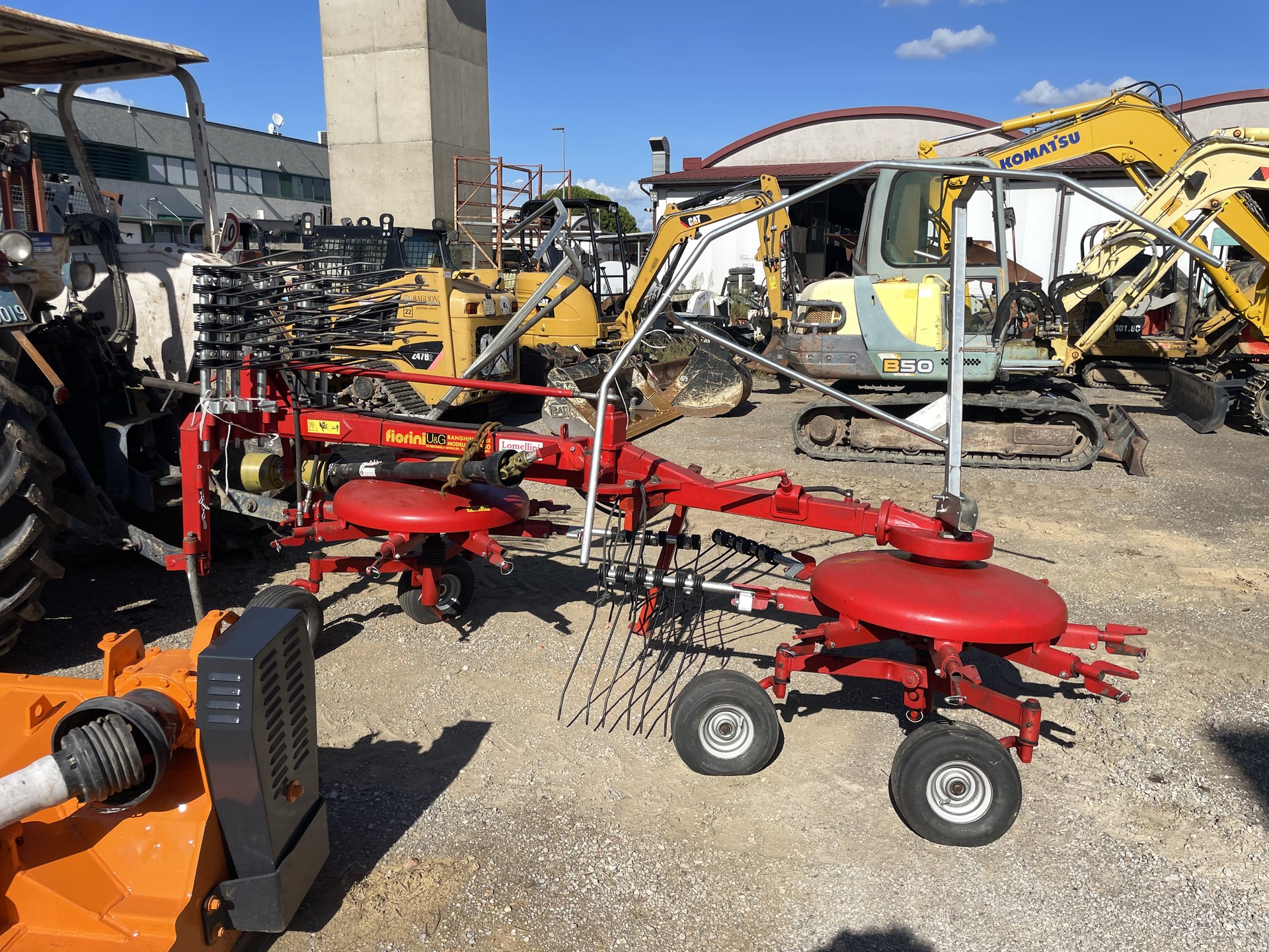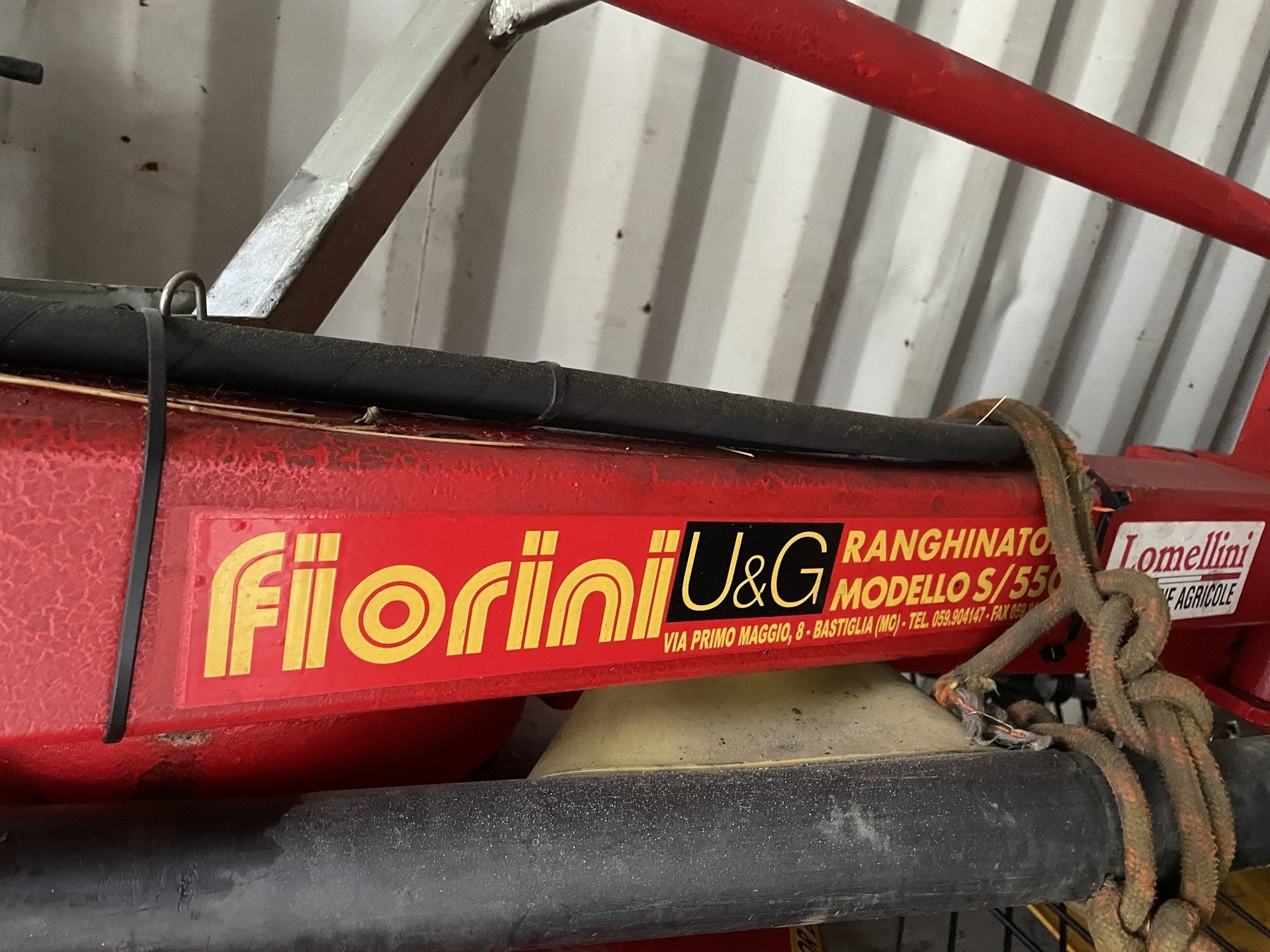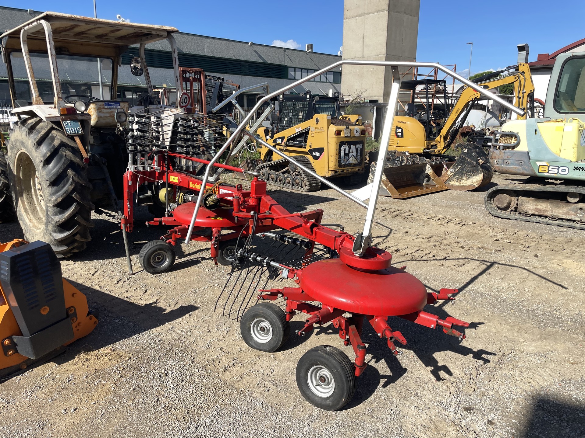 Ranghinatore Fiorini doppia girante. Larghezza di lavoro 5,50 metri, macchina seminuova, completo di cardano e bracci di scorta.