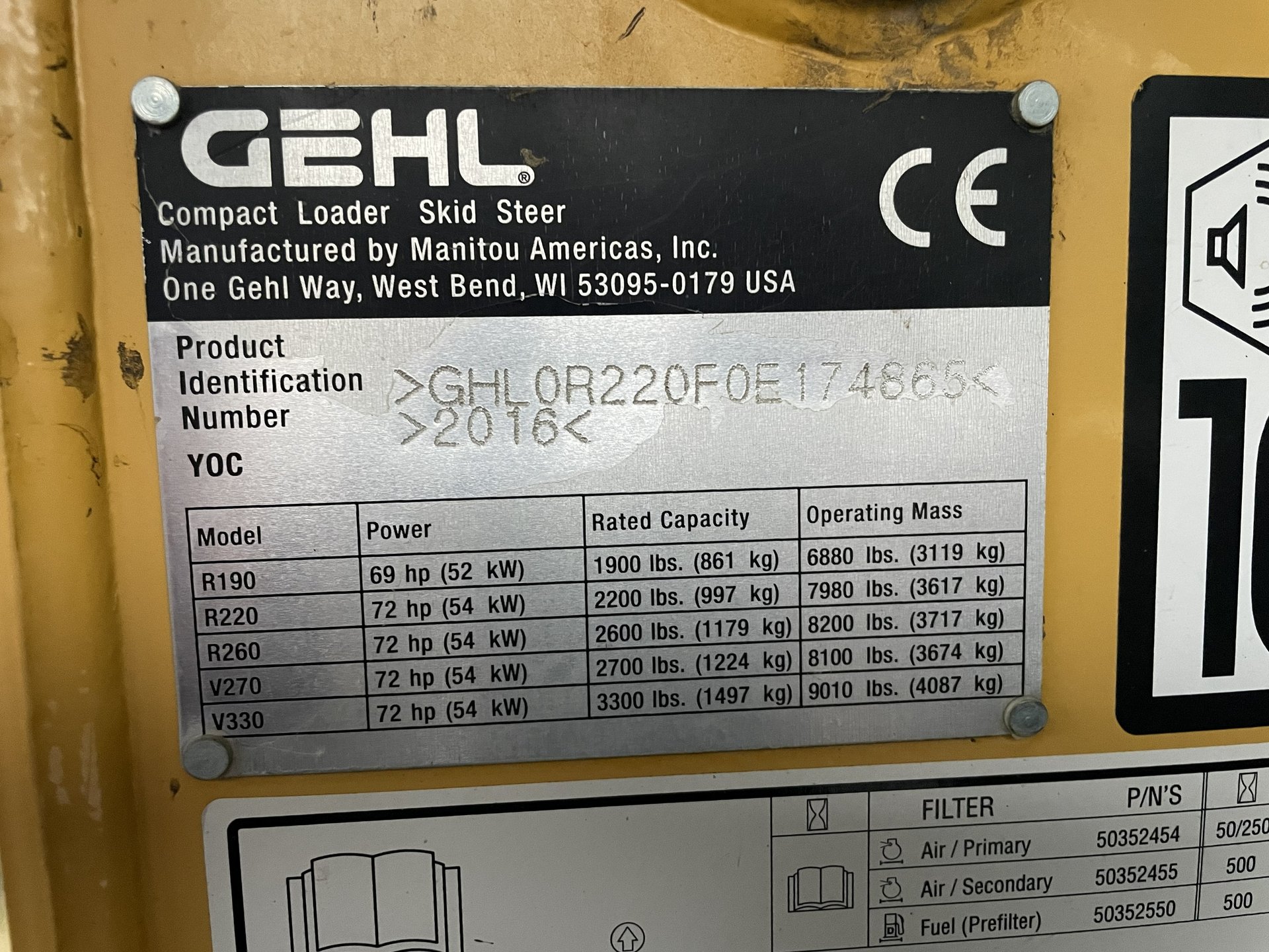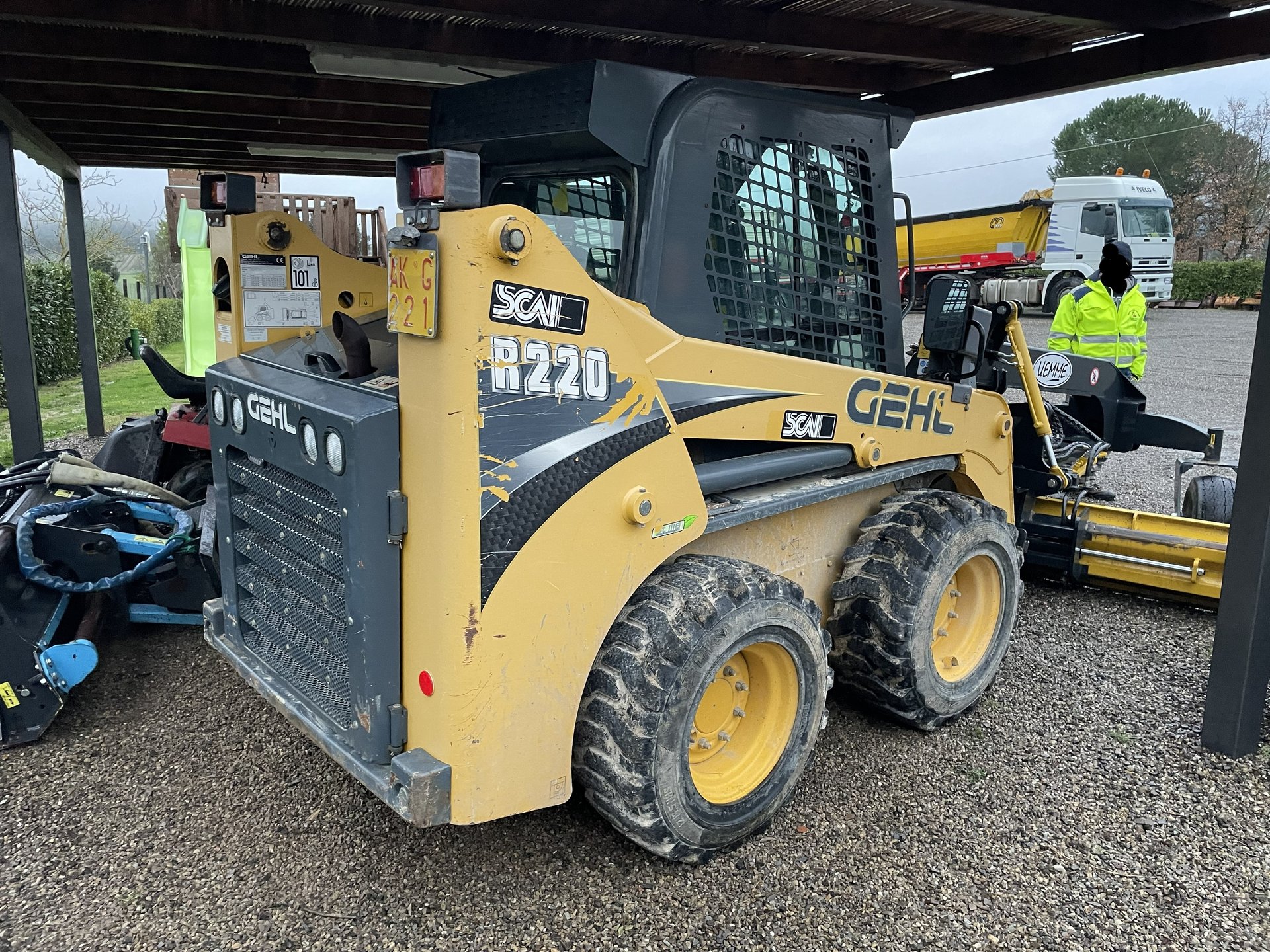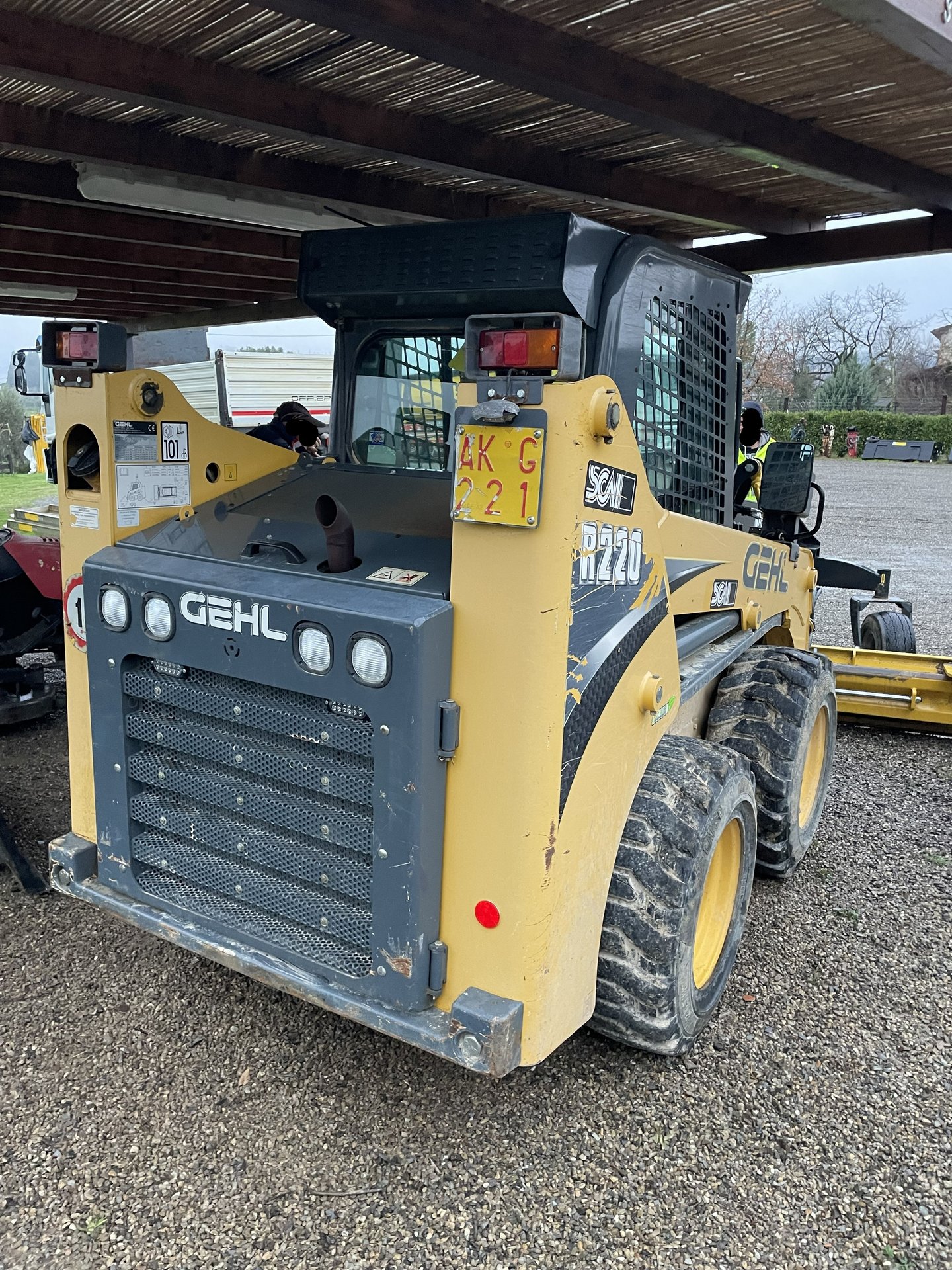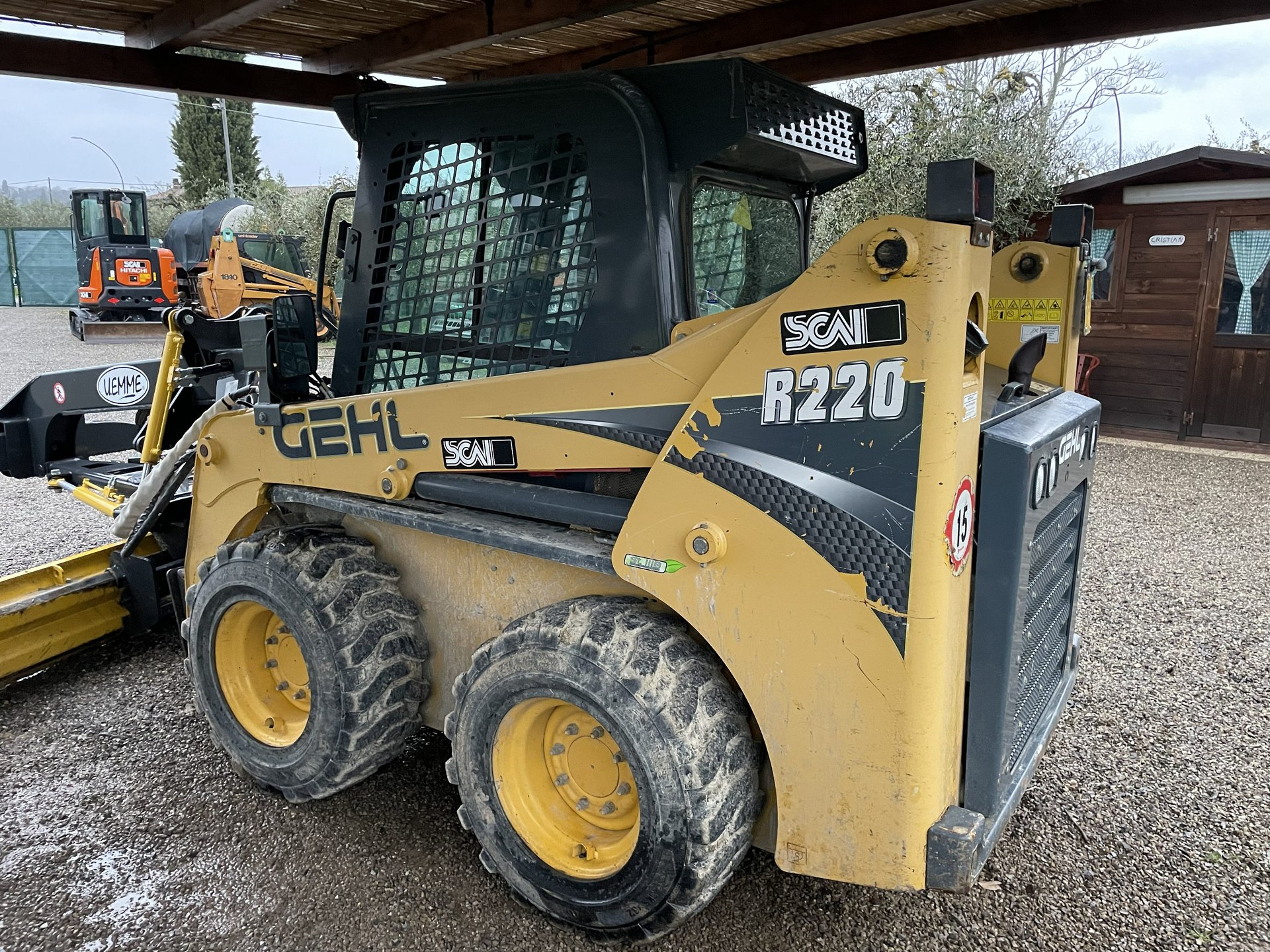 Minipala gommata Gehl R220, anno 2016, 2500 ore di lavoro. Macchina cabinata con aria condizionata, completa di benna terra.