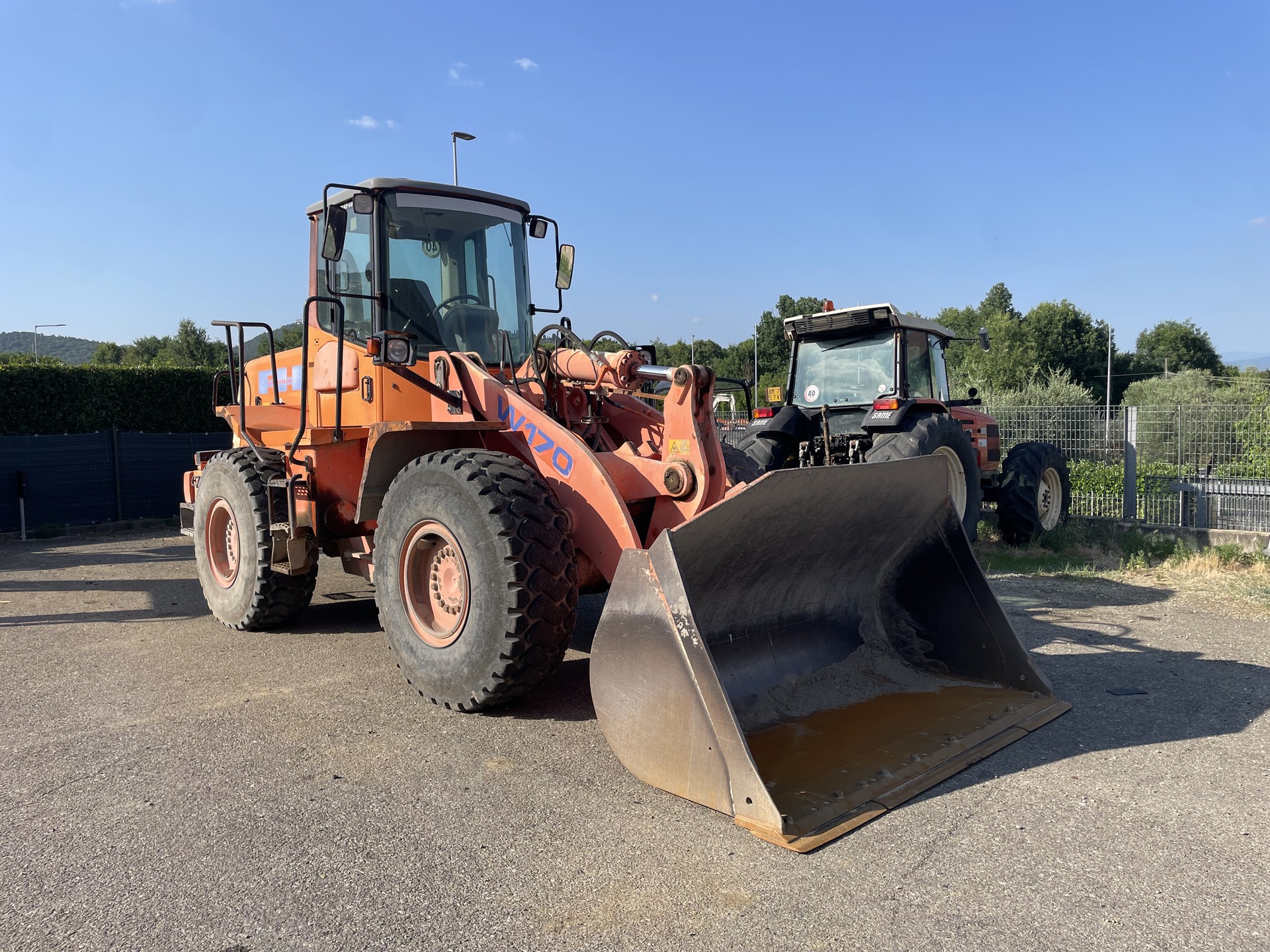 Pala gommata Hitachi W 170, anno 2001, 18800 ore di lavoro. Macchina completa di benna da carico.