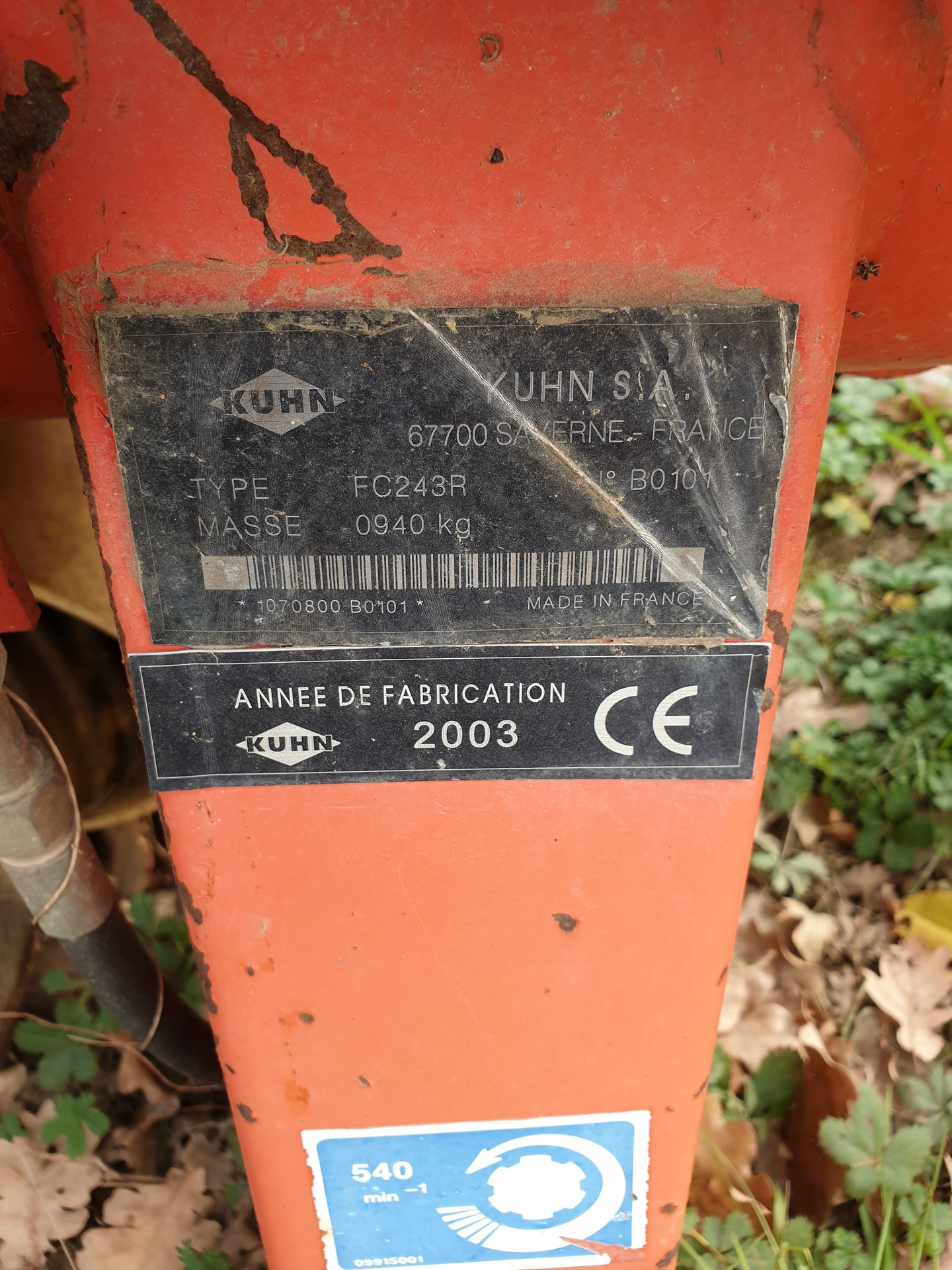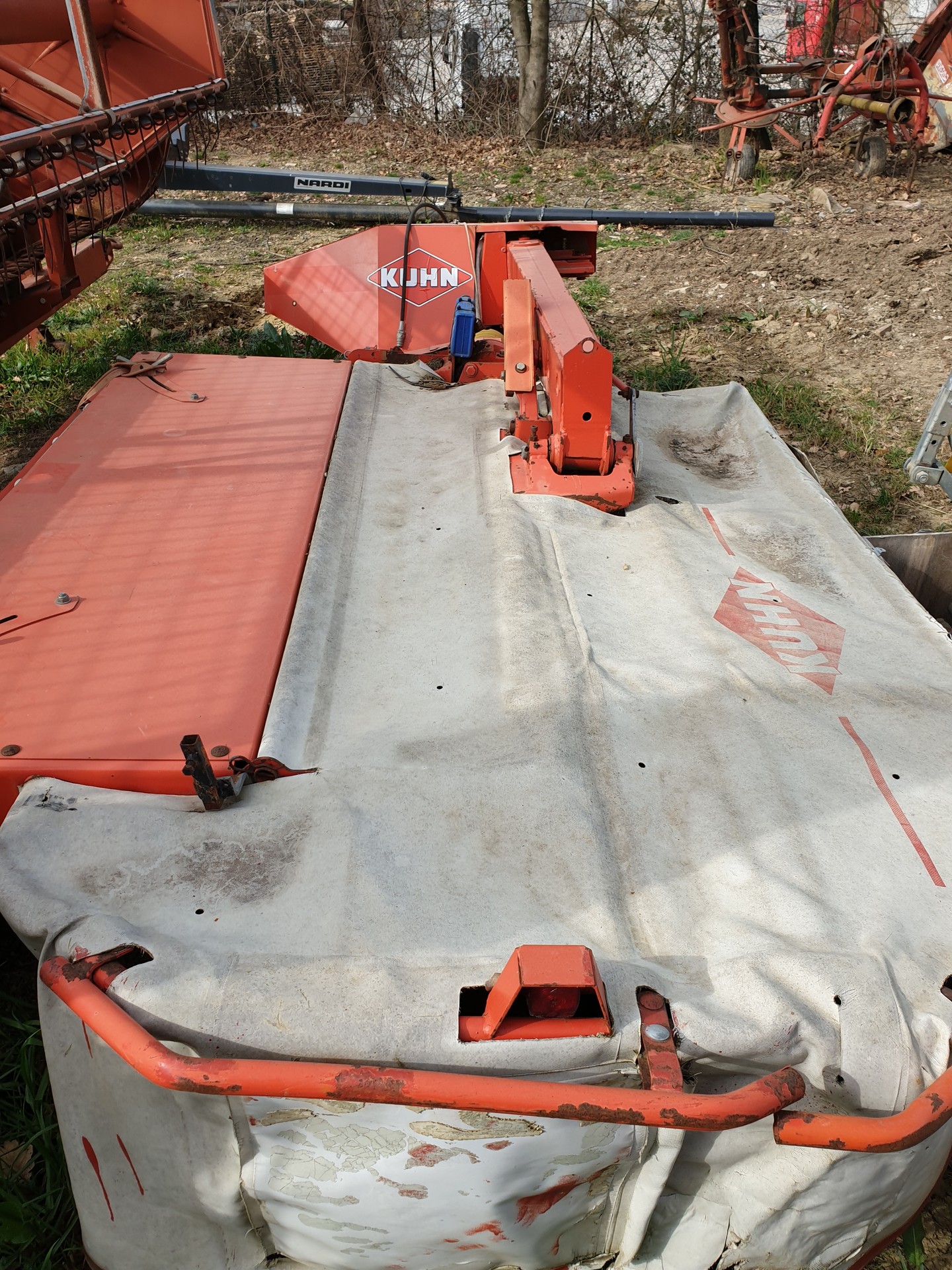 Falciacondizionatrice posteriore Kuhn, modello FC243R, anno 2003, rulli in gomma.