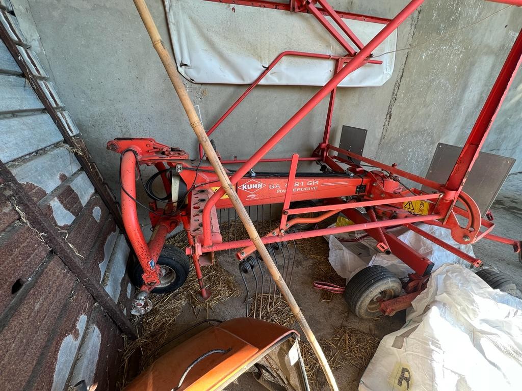 Ranghinatore Kuhn GA421 GM , anno 2004, completo di telo forma andana, assale tandem e ruota tastatrice.