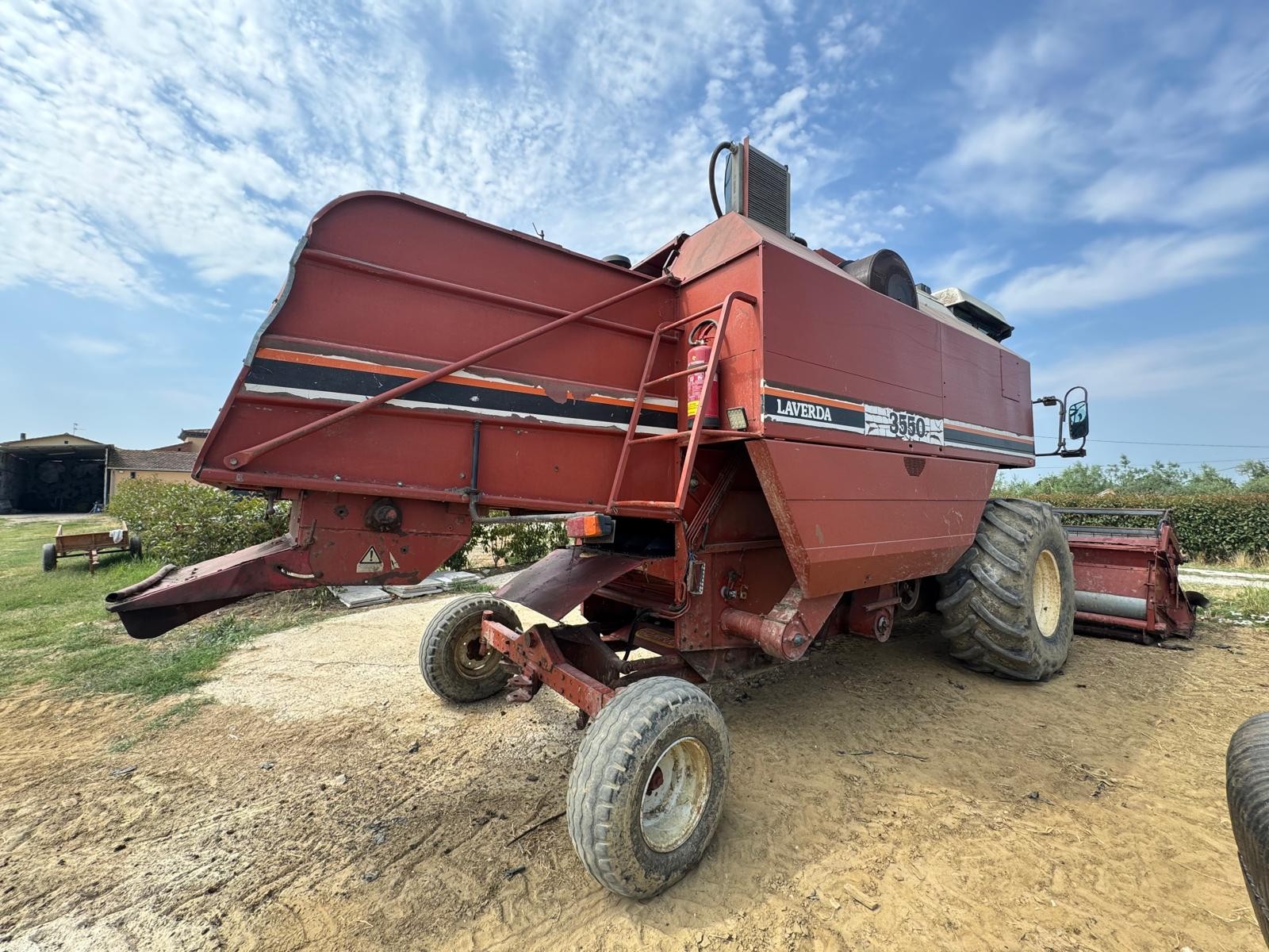 Mietitrebbia Laverda 3550, completa di barra grano da 3,60 metri, crivelli registrabili, aria condizionata revisionata e trinciapaglia.