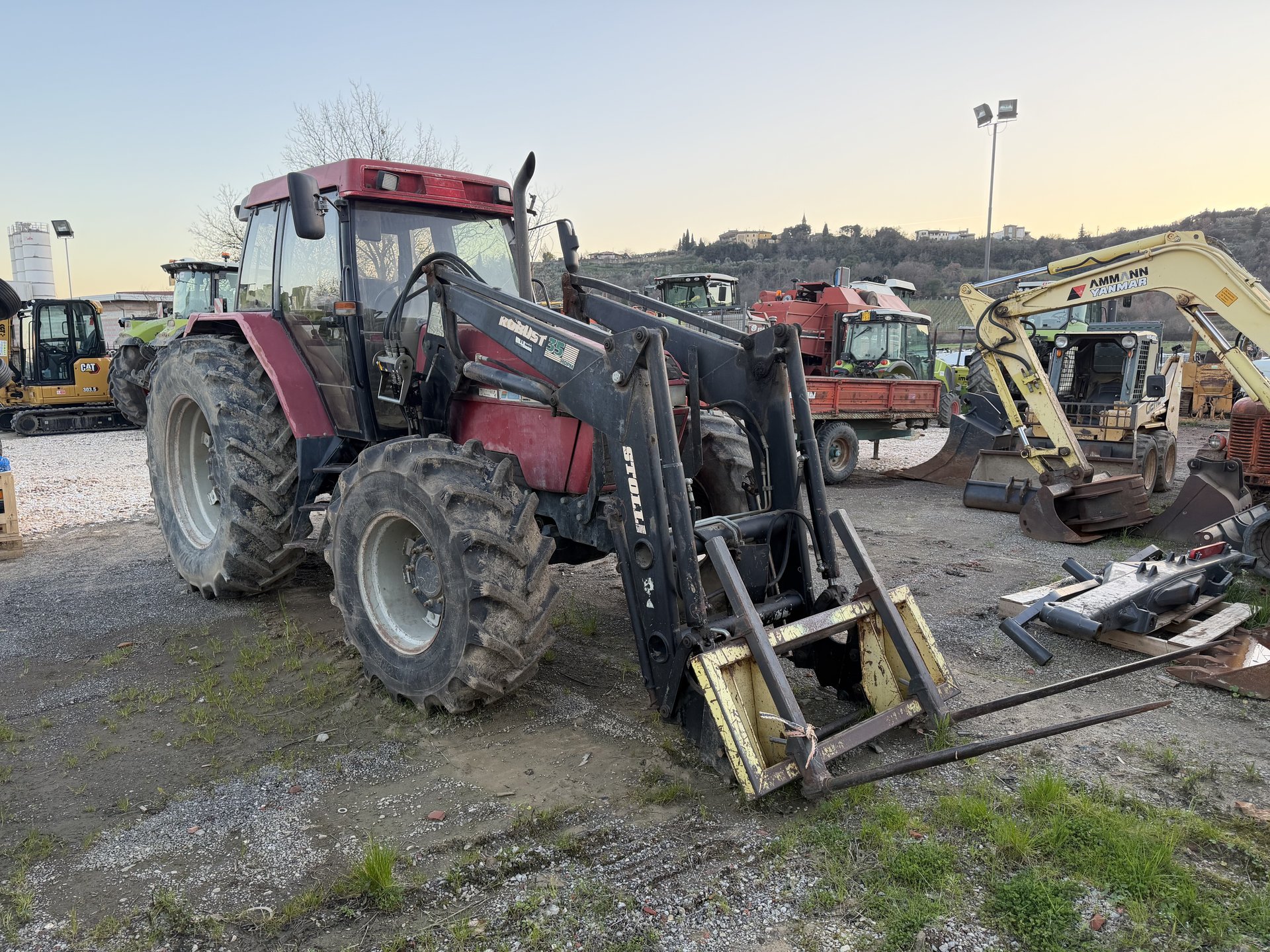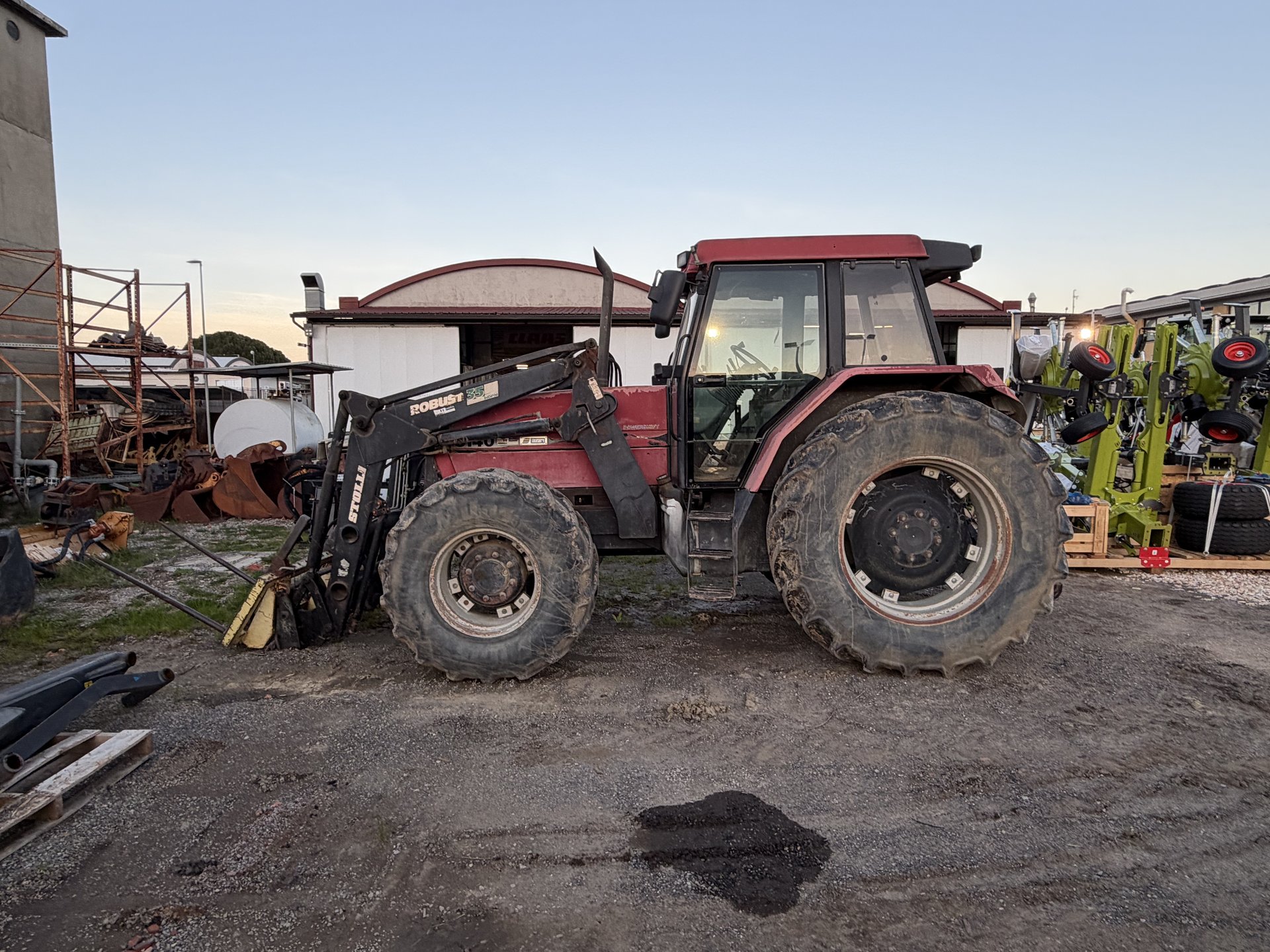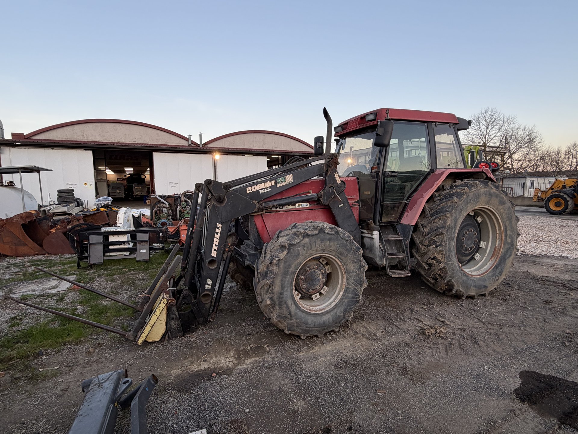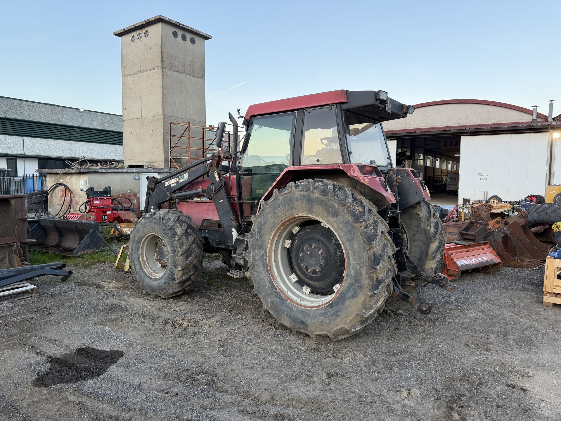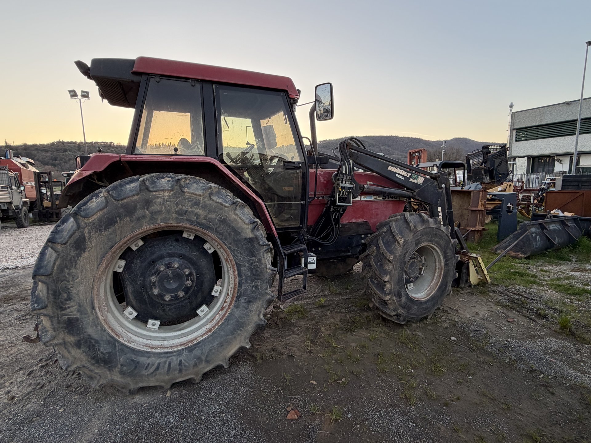 Trattore gommato Case 5140, 14800 ore di lavoro. Macchina completa di caricatore frontale con forca rotoli, 3 distributori meccanici, terzo punto idraulico.