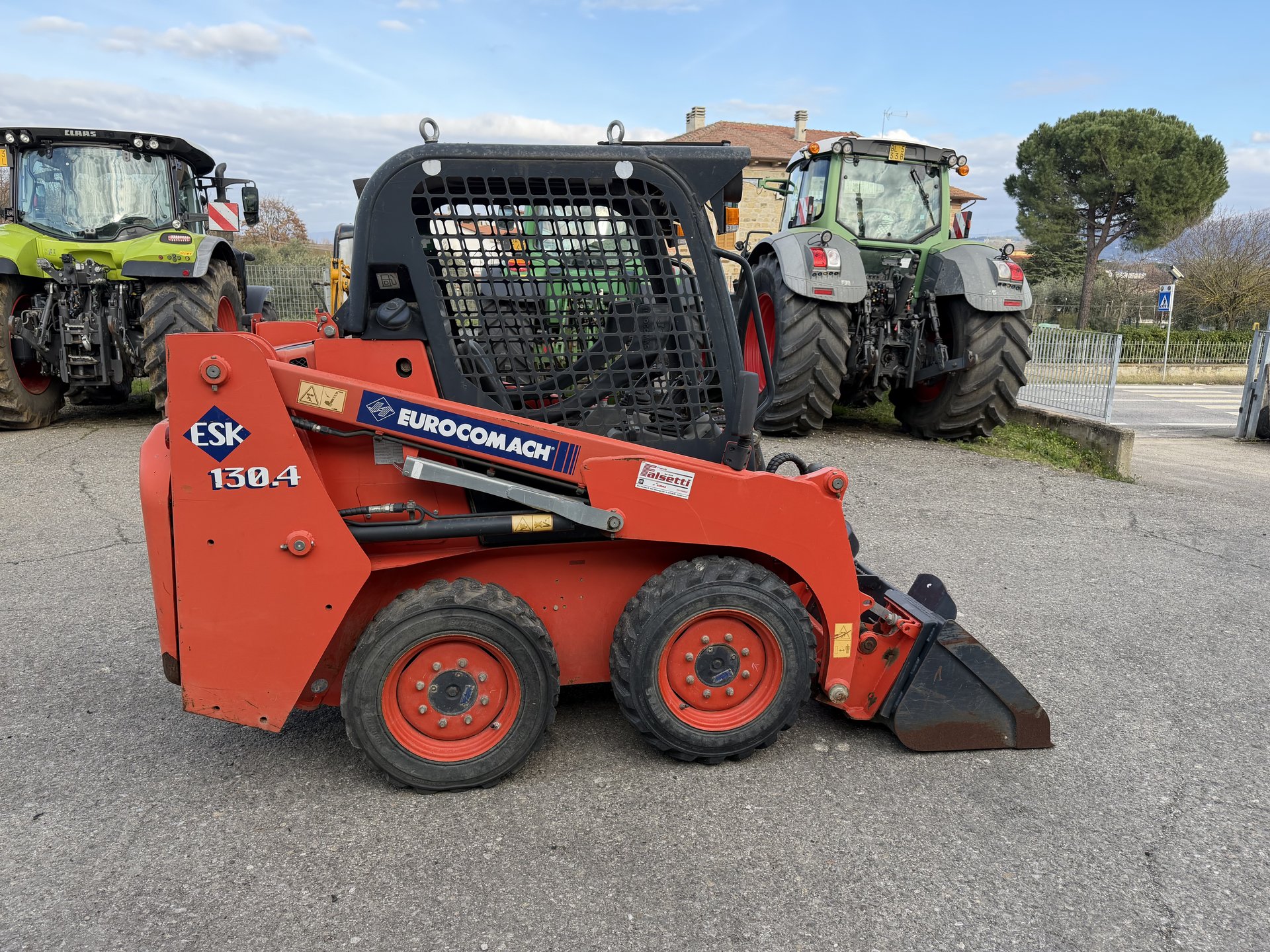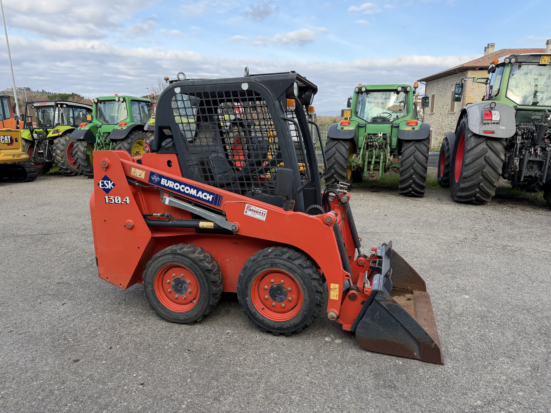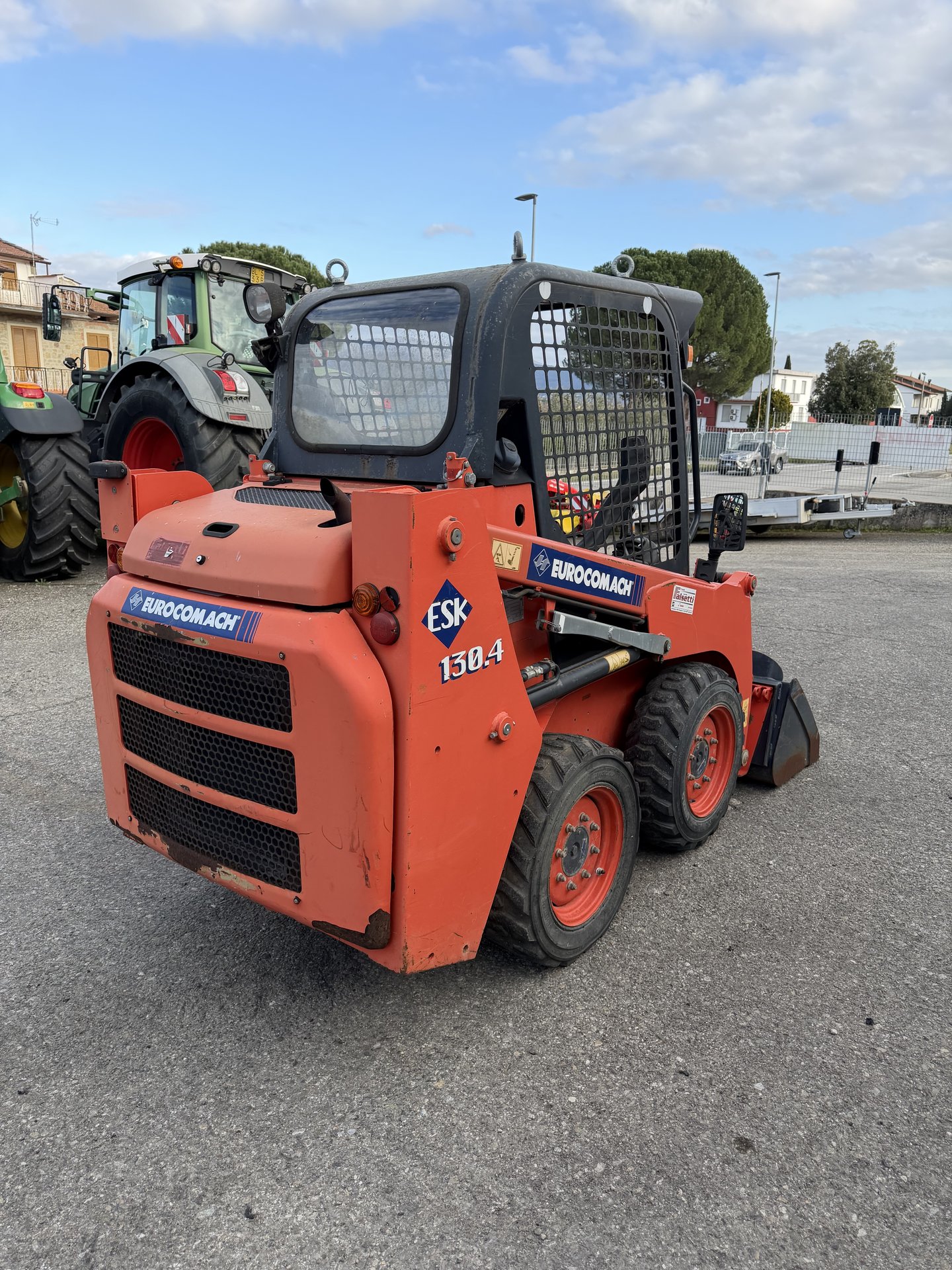 Minipala gommata Eurocomach ESK130.4, 660 ore di lavoro. Macchina con telaio canopy, impianto idraulico ausiliario con standard flow, benna terra e forca pallet.