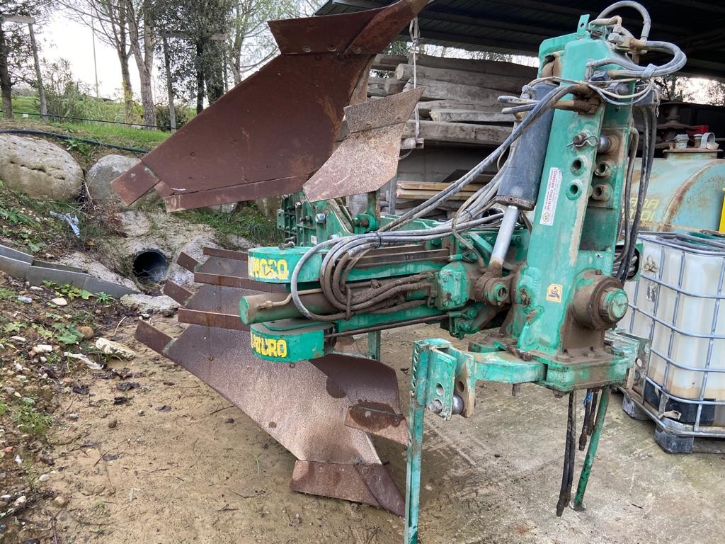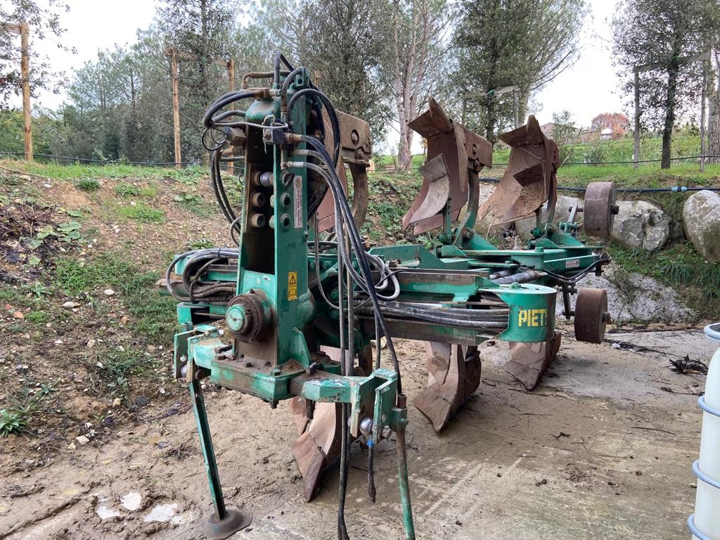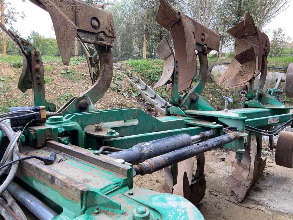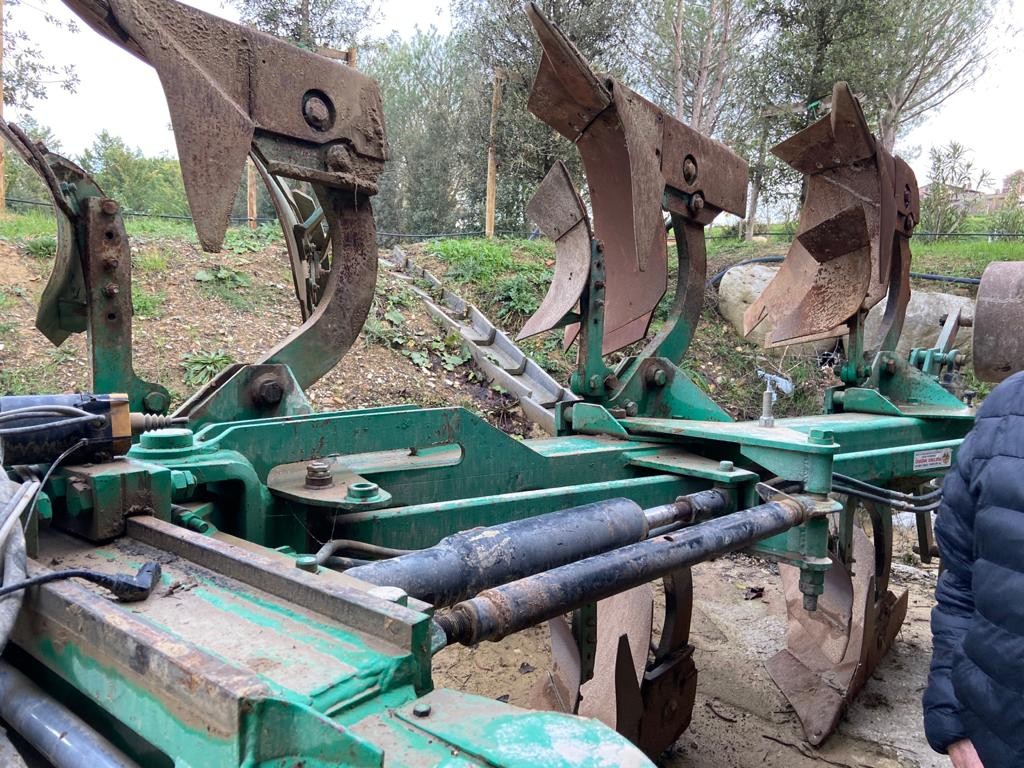 Aratro trivomere reversibile Moro Pietro, spostabile idraulico, completo di ruotini di regolazione della profondita.