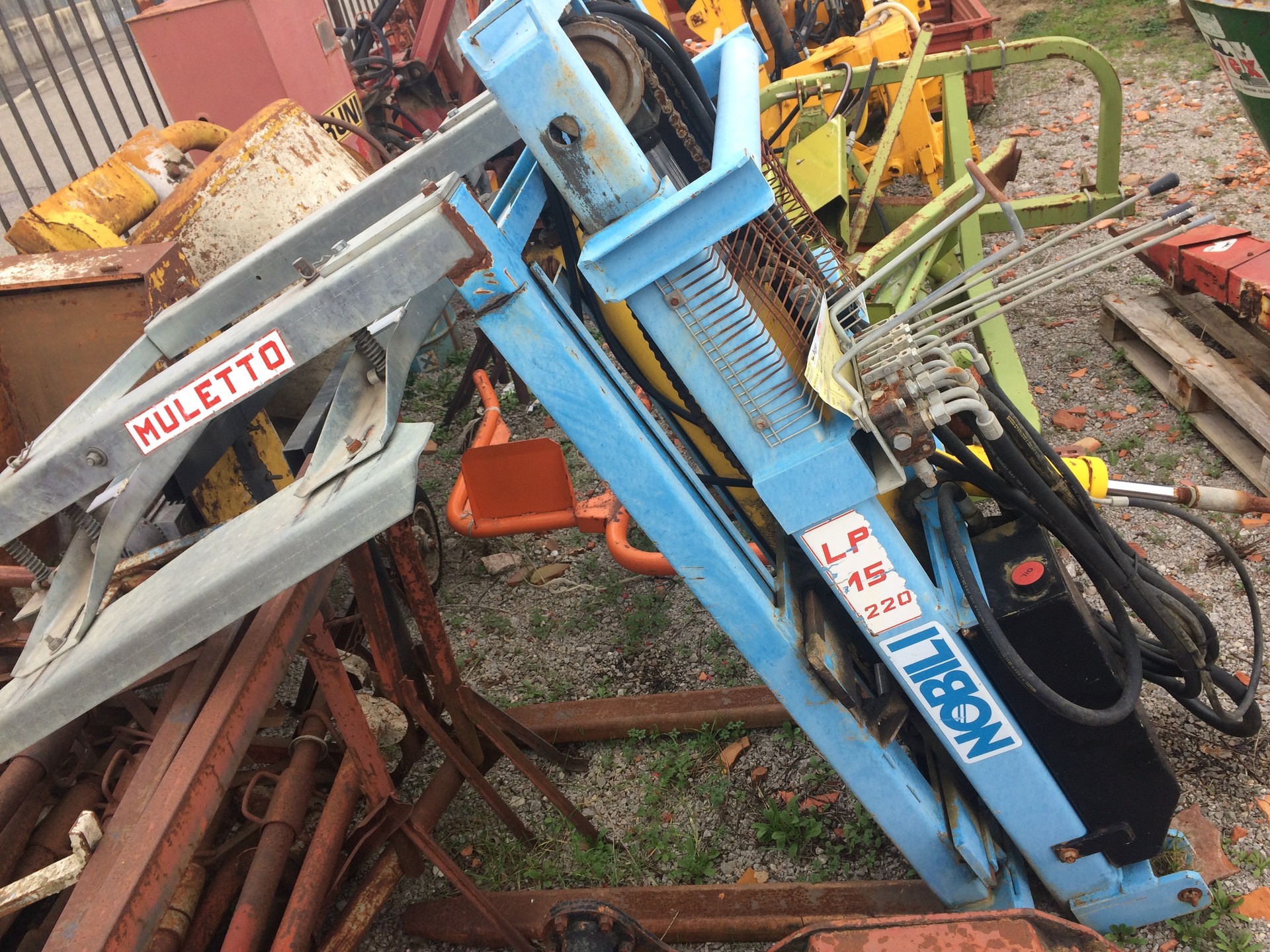 Muletto portato Nobili, modello LP15-220, anno 1984. Portata: 1500 Kg. Terzo punto idraulico e pompa indipendente.