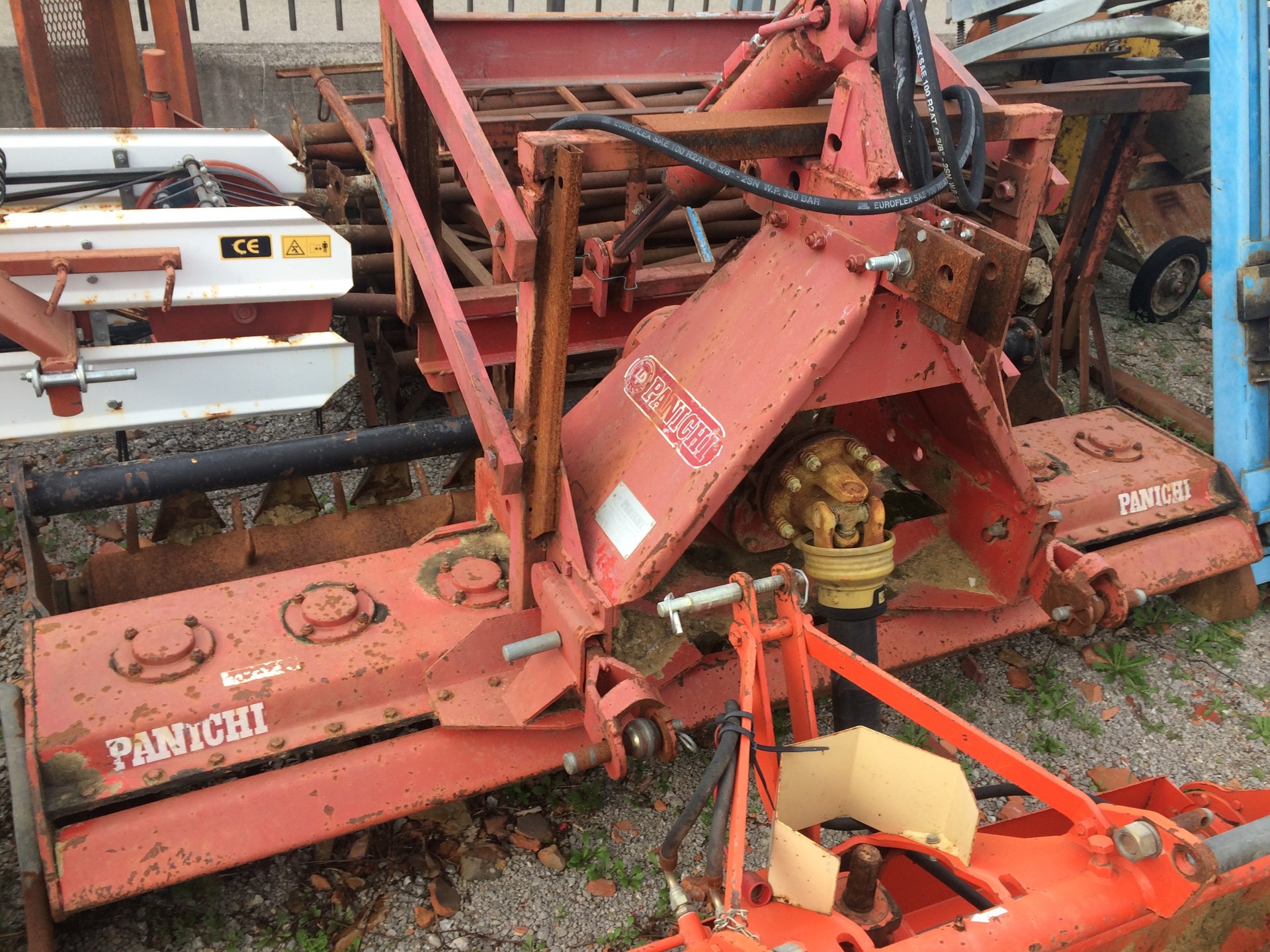 Erpice rotante portato Panichi, modello MP230. Completo di rullo risaia e attacco artigianale per seminatrice.