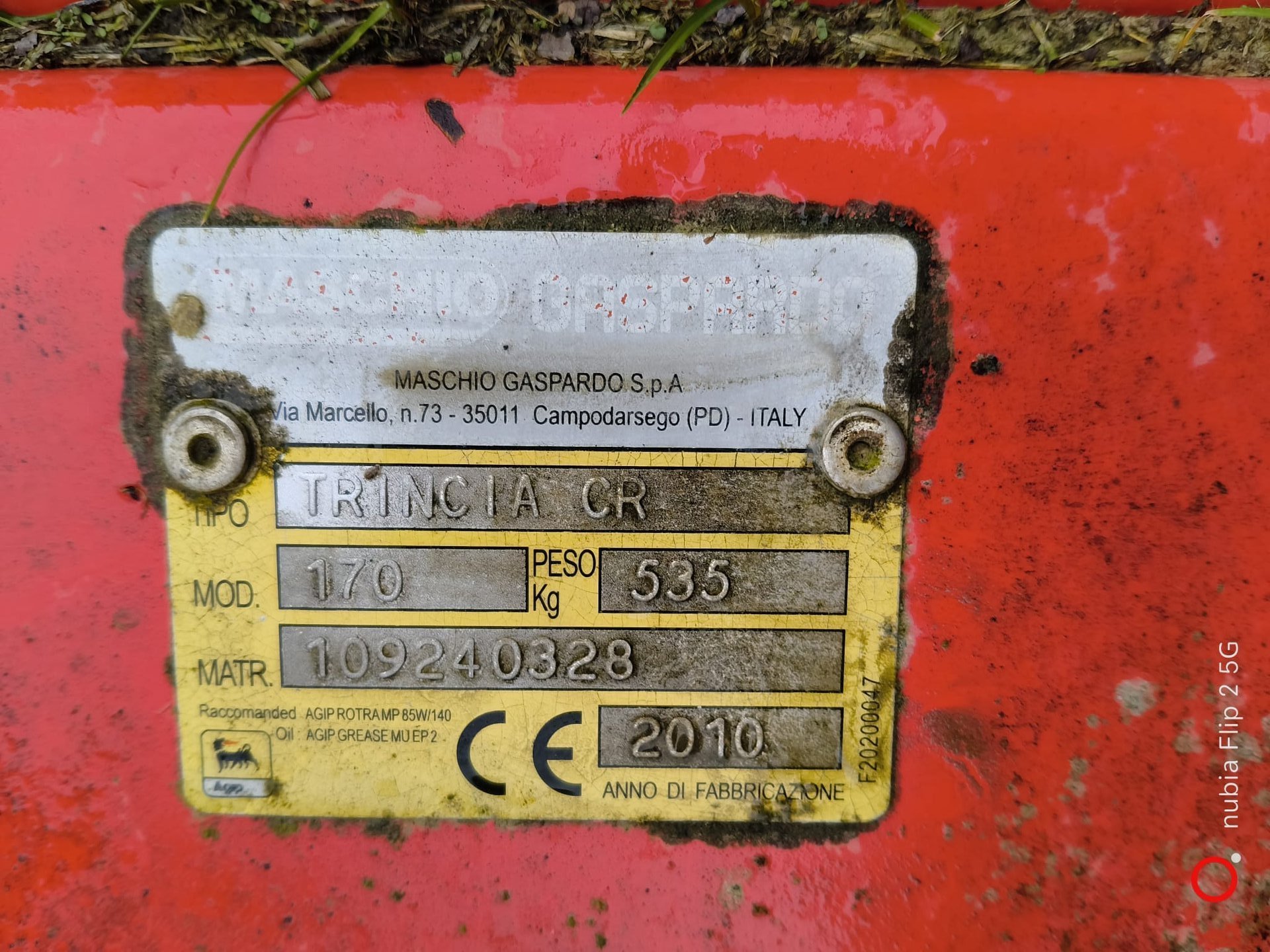 Trincia portato Maschio Gaspardo 170, anno 2010. Macchina a mazze.