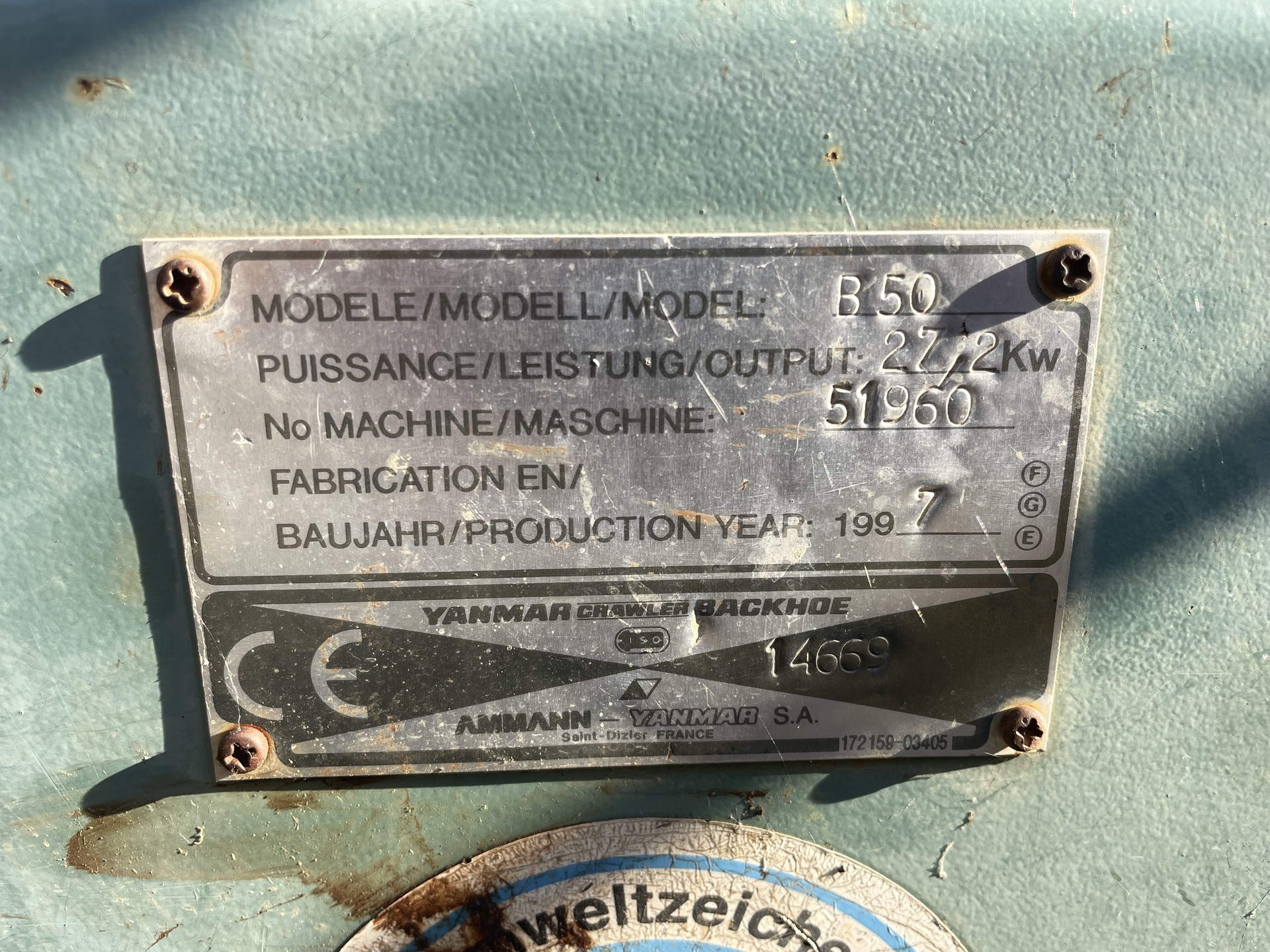 Escavatore Yanmar B50, anno 1997, 5600 ore di lavoro. Macchina cabinata, completa impianto trincia , martello e 3 benne.